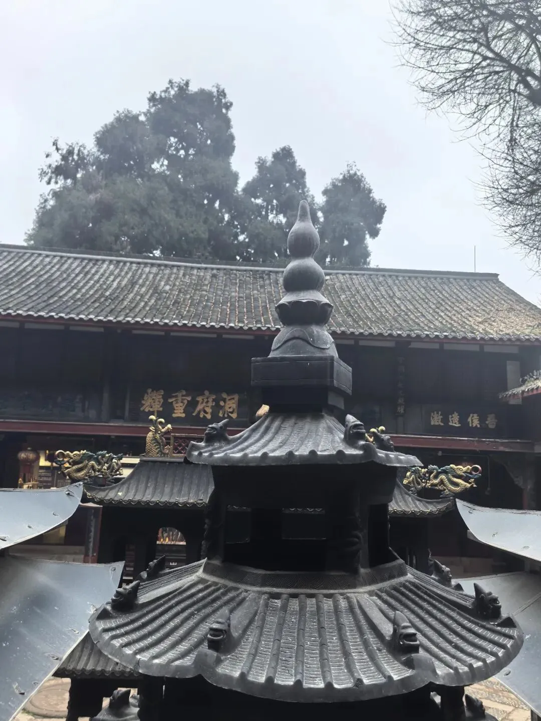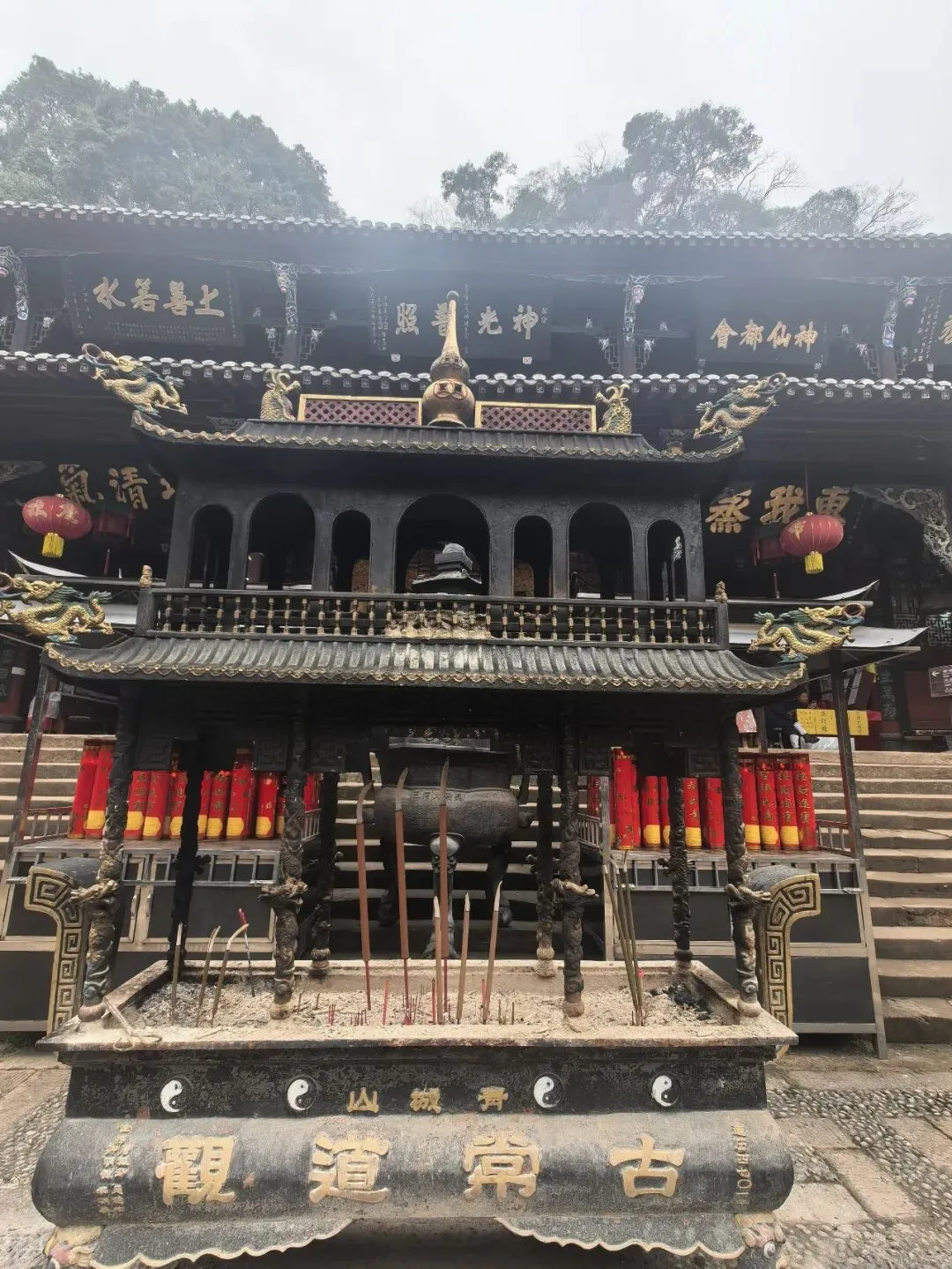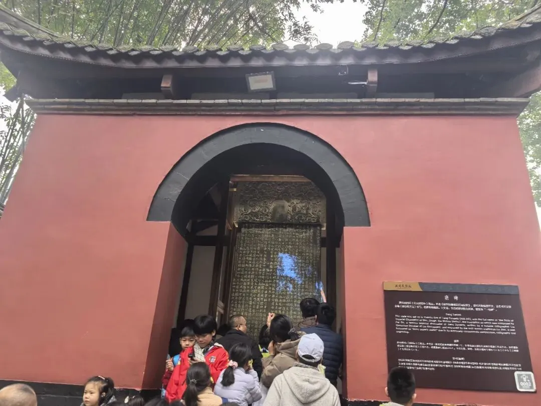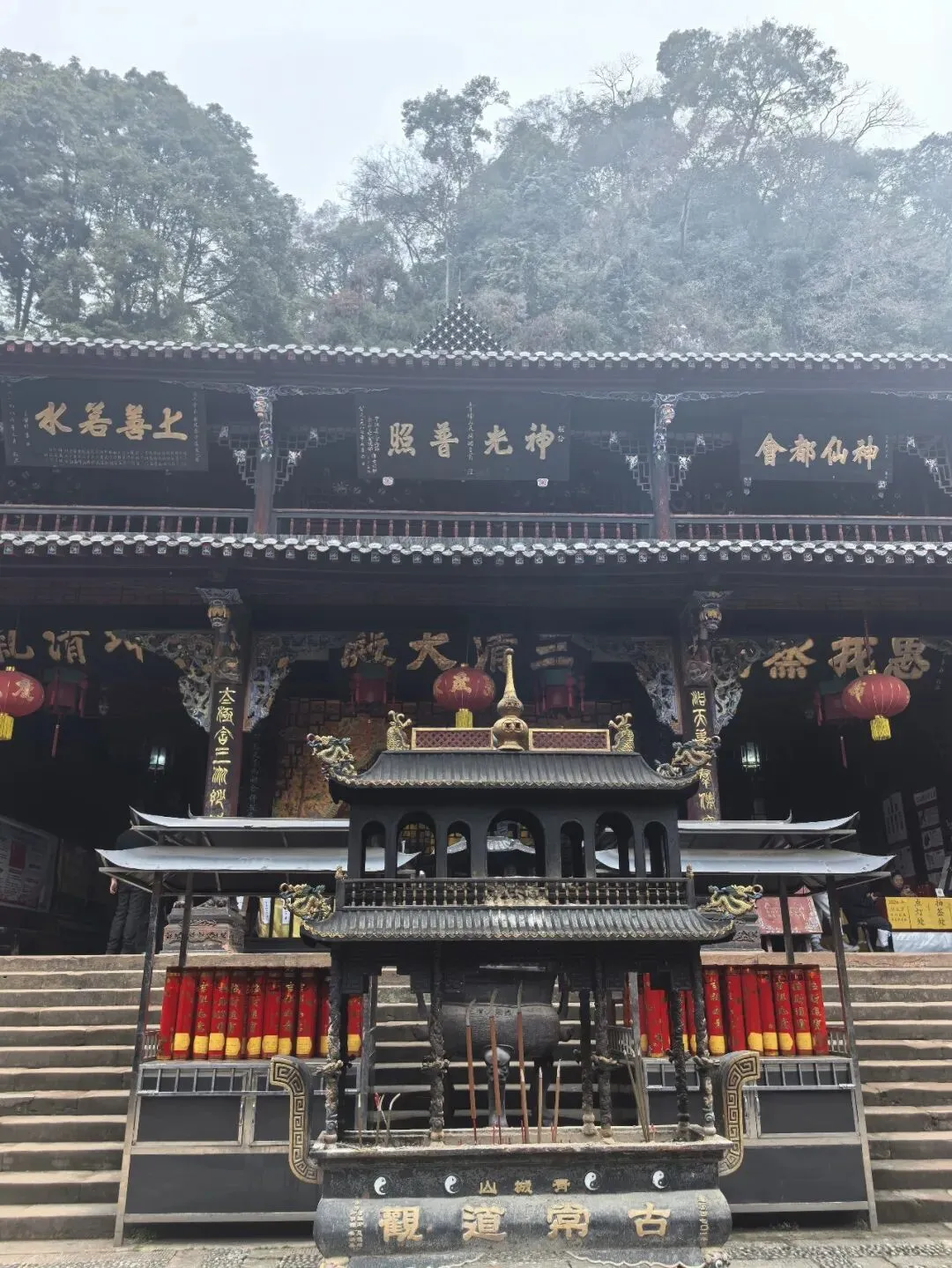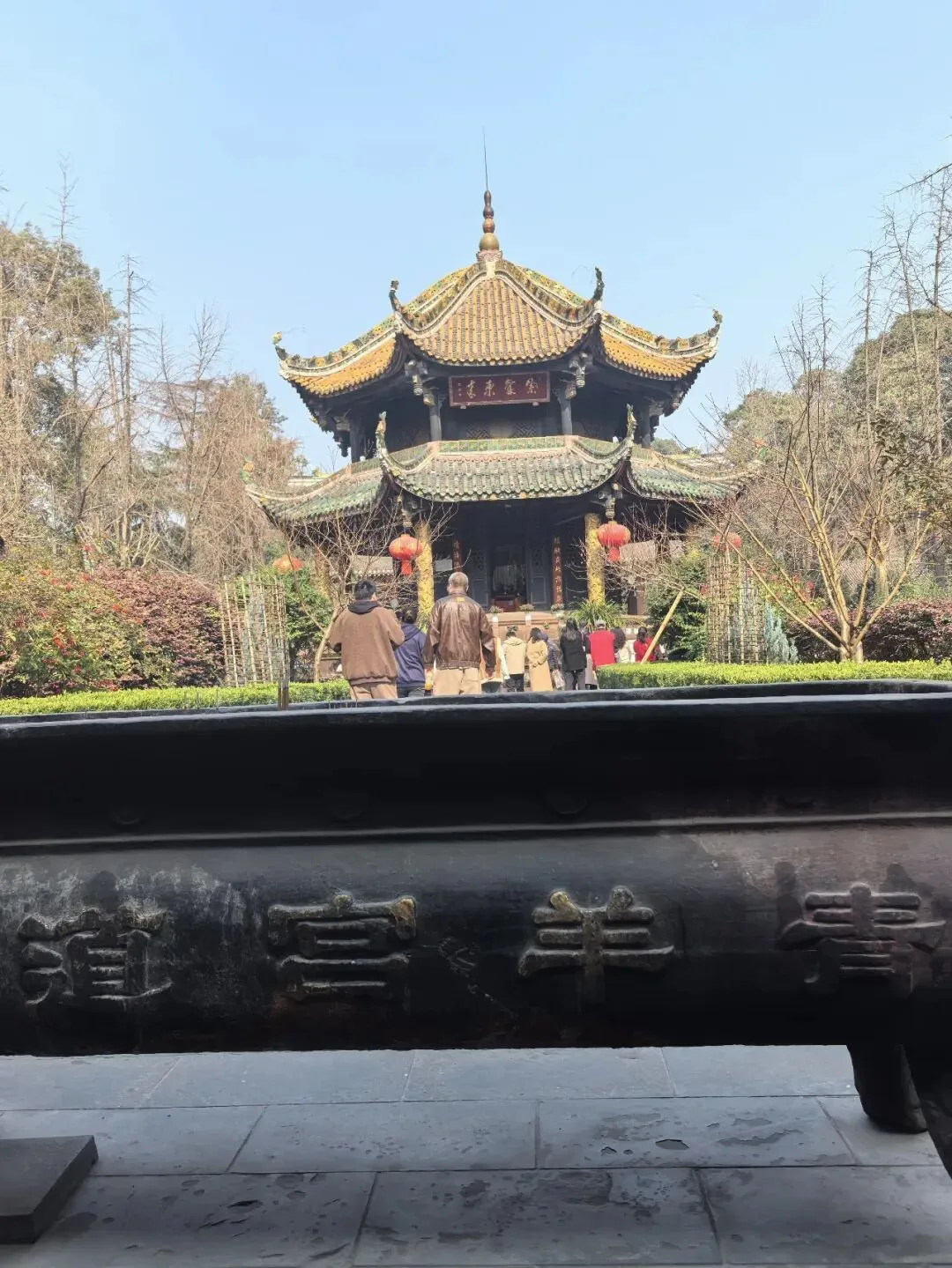 第三个一定看看的就是青羊宫的青羊一定要看一看、摸一摸。青羊宫的独角青羊(单角铜羊)是清雍正元年(1723年)由大学士张鹏翮从北京购得并捐赠给青羊宫的。这只铜羊造型极为独特,融合了十二生肖的特征:鼠耳、牛鼻、虎爪、兔背、龙角、蛇尾、马嘴、羊须、猴颈、鸡眼、狗腹、猪臀。这种将十二生肖元素集于一身的设计,在中国古代艺术和宗教文物中极为罕见,体现了道教文化中“万物一体”“阴阳相生”的哲学思想。