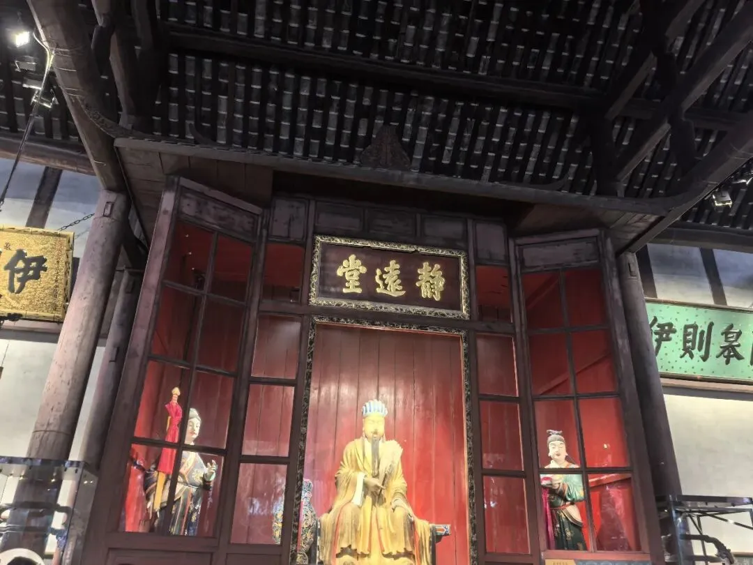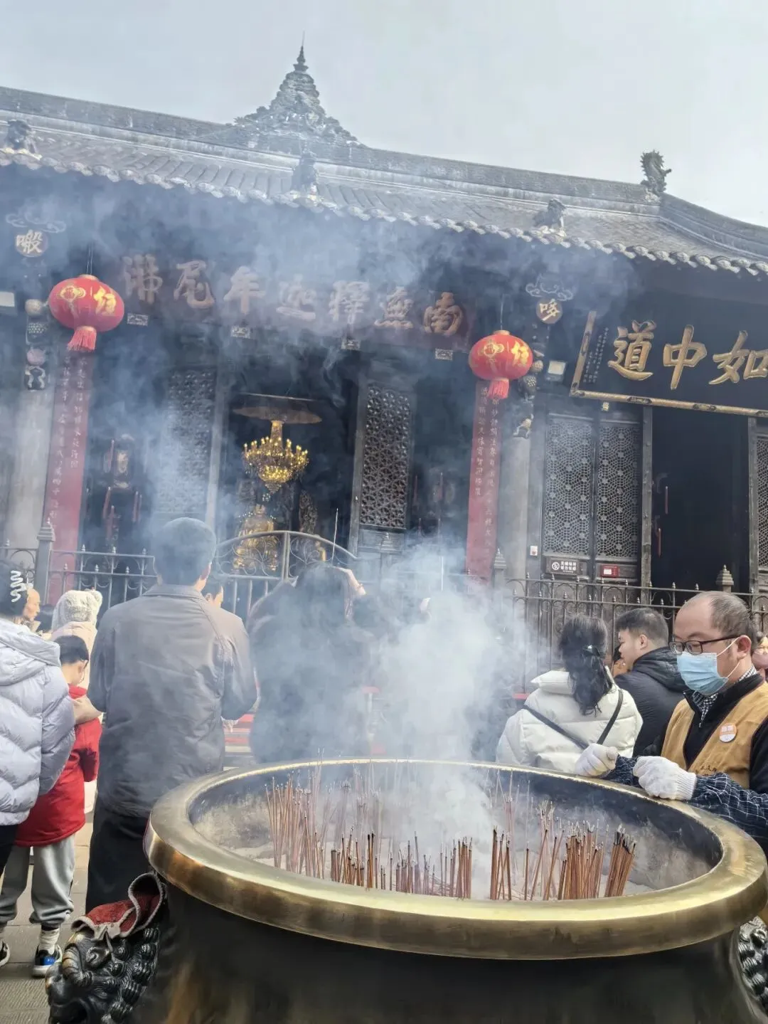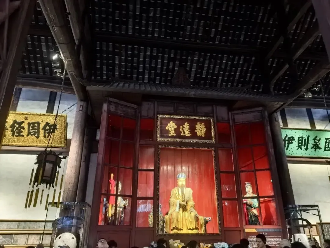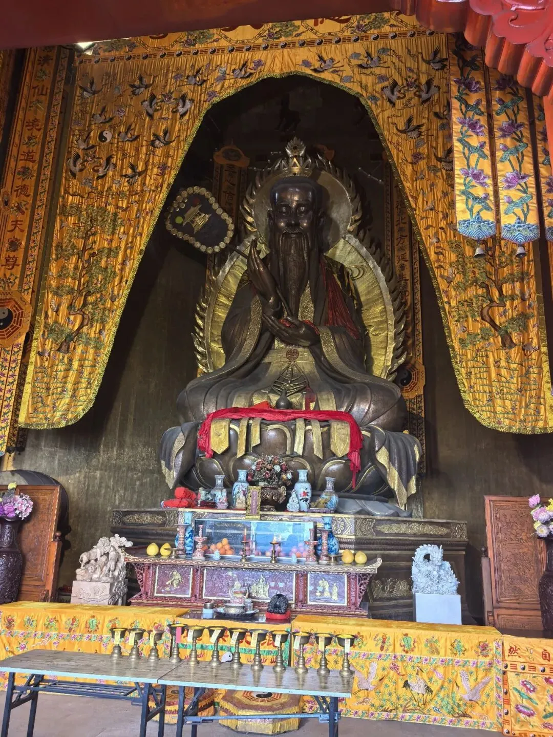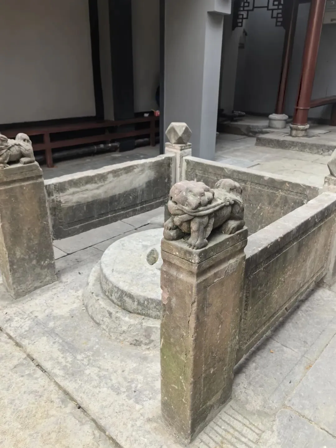 第三个一定看看的就是青羊宫的青羊一定要看一看、摸一摸。青羊宫的独角青羊(单角铜羊)是清雍正元年(1723年)由大学士张鹏翮从北京购得并捐赠给青羊宫的。这只铜羊造型极为独特,融合了十二生肖的特征:鼠耳、牛鼻、虎爪、兔背、龙角、蛇尾、马嘴、羊须、猴颈、鸡眼、狗腹、猪臀。这种将十二生肖元素集于一身的设计,在中国古代艺术和宗教文物中极为罕见,体现了道教文化中“万物一体”“阴阳相生”的哲学思想。