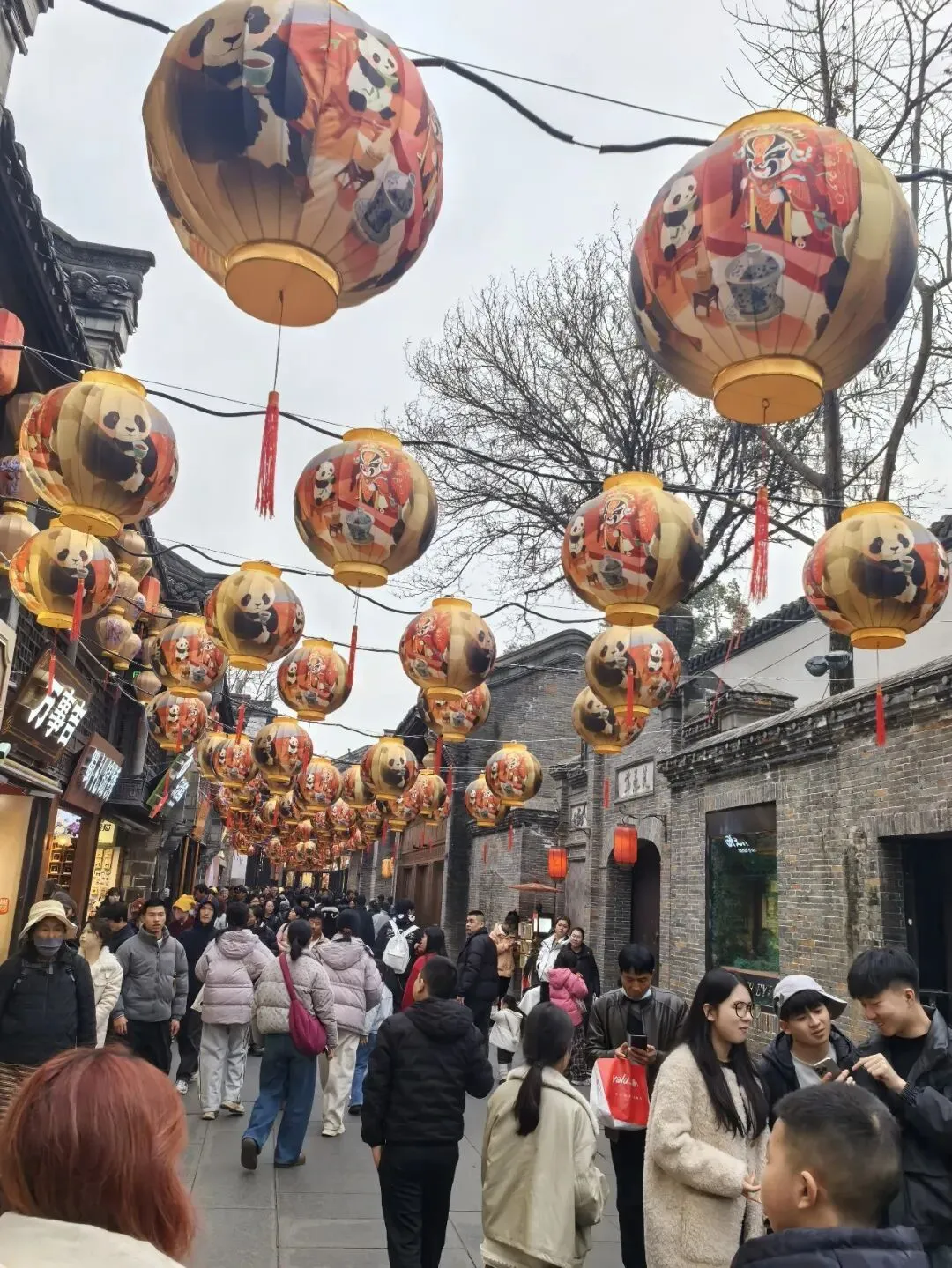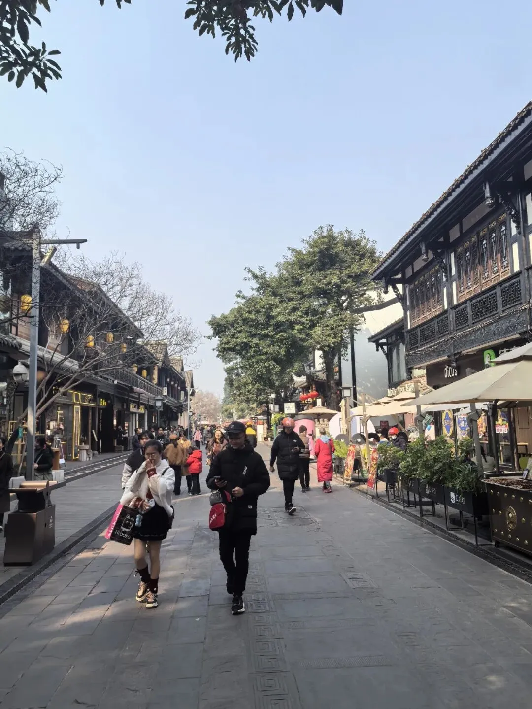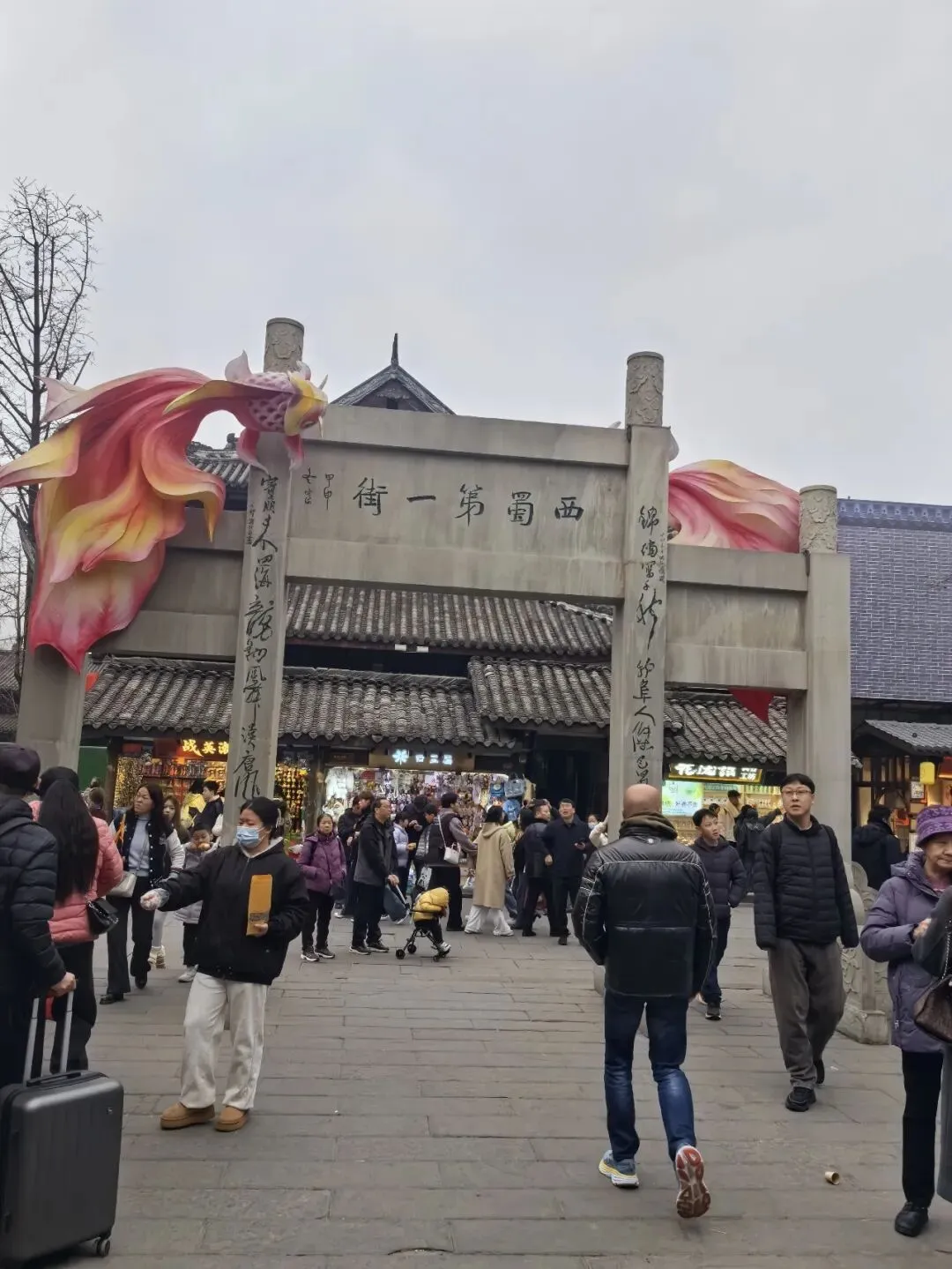 临近过年,宽窄巷子的游人非常多,到处人山人海。不过作为旅游城市,而且作为来成都必逛的景点,这里总是那么多人。这里多是卖纪念品和小吃店为主,不过吃的东西并不好吃,而且比较贵,一般我不建议在这里买吃的。纪念品在淘宝上也可以买到,不过如果实在喜欢,买个手办也是可以的,毕竟在景区买,要的是一种感觉和情绪价值,这是淘宝给不了的。