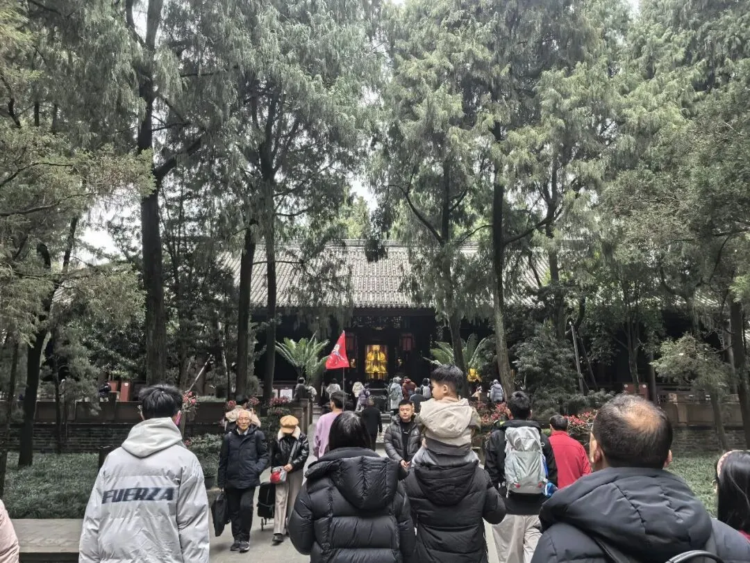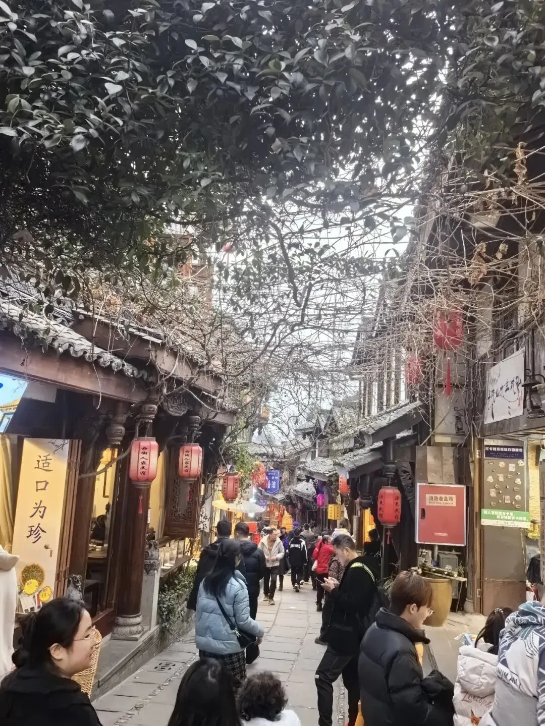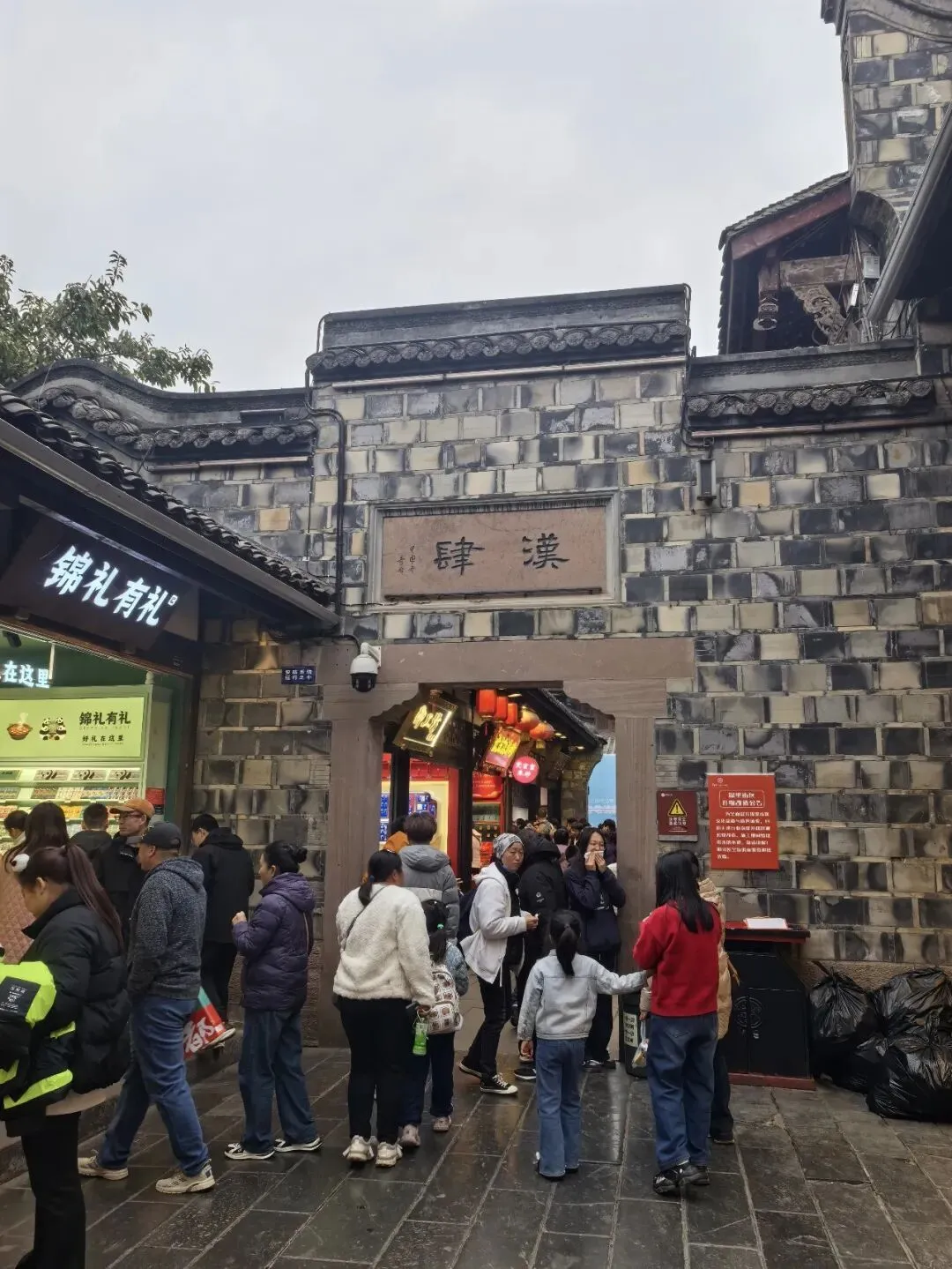 临近过年,宽窄巷子的游人非常多,到处人山人海。不过作为旅游城市,而且作为来成都必逛的景点,这里总是那么多人。这里多是卖纪念品和小吃店为主,不过吃的东西并不好吃,而且比较贵,一般我不建议在这里买吃的。纪念品在淘宝上也可以买到,不过如果实在喜欢,买个手办也是可以的,毕竟在景区买,要的是一种感觉和情绪价值,这是淘宝给不了的。