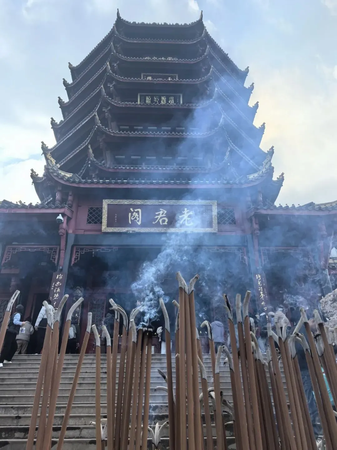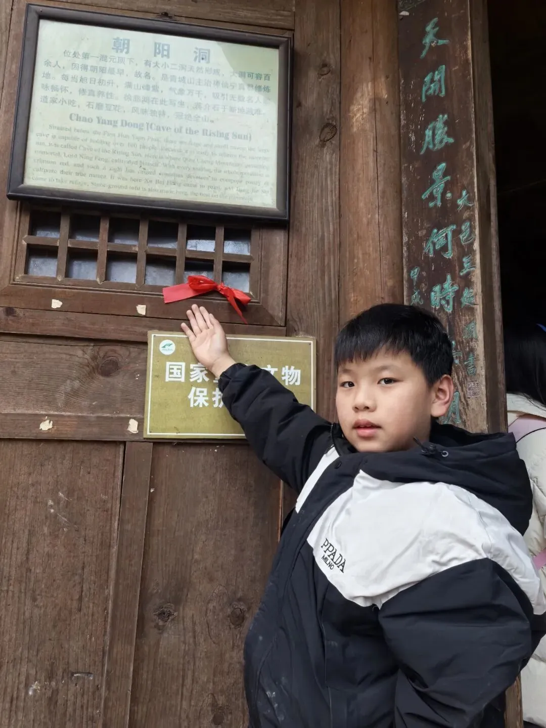 我们从月城湖开始坐缆车,只坐了十分钟左右,下缆车后走几步路就到慈云阁了。两个孩子很虔诚的在这里祈福。然后我们一路往上走,先后参观了上清宫、老君阁、古常道观、朝阳洞、五洞天、天师洞等道教历史文化古迹,最后回到了大门口,大宝在朝阳洞虔诚的请香祈祷,得到了朝阳洞道长的祝福。