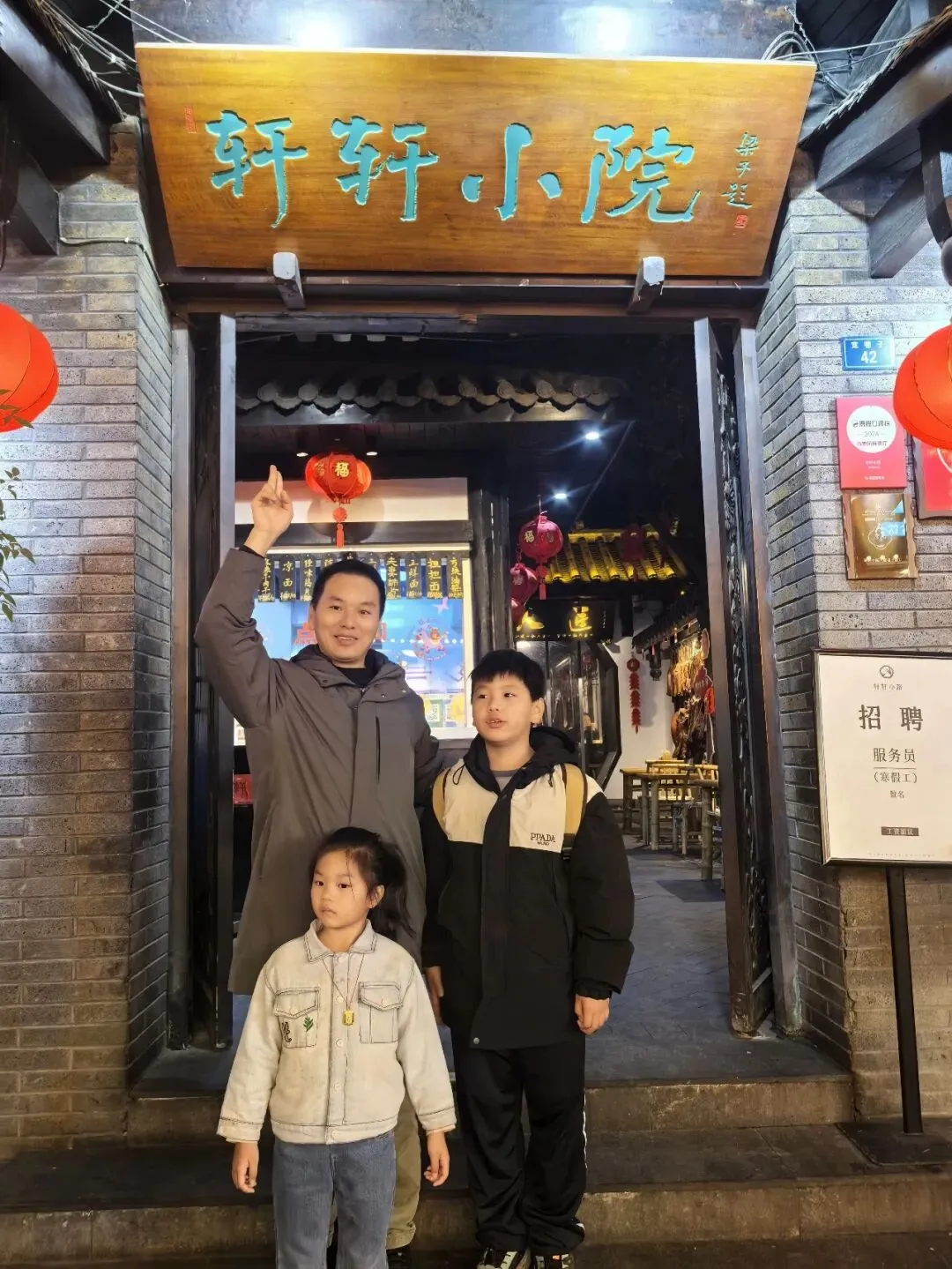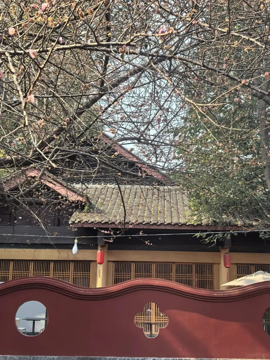半个小时后,我们就到成都了,这次我们住的酒店是成都瀚柏酒店春熙路店,酒店相当不错,还有独立的院子让孩子玩耍,门口有一家叫辣抓花园的网红火锅店,大大的院子,还有网红哪吒造型在门口,旁边是江,环境优雅安静,但客人不少,我们就在这里吃晚餐,这一天就圆满结束了。