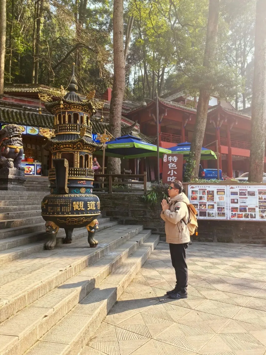 青城山给我的感觉是,道教文化底蕴深厚,山中有一股清净幽深的感觉,像是很亲切,有种回家的感觉。我非常喜欢道教文化,在中国传统文化里,我最喜欢的便是道家的哲学思想,崇尚这种道法自然的精神,或许等以后孩子长大了,某一天我也有可能会修道吧。