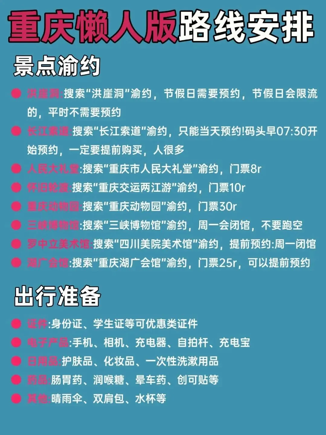 • 轻轨优先!下载“渝畅行”,1/2/3号线覆盖80%景点
