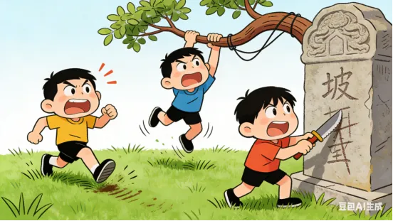 踩草坪、攀树枝、刻古迹