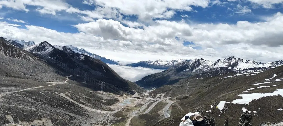 出康定城没多久,就遇上了大名鼎鼎的折多山——川藏线第一关,折多山以4298米的海拔屹立于川西高原,其壮丽雪山与翻腾云海交织成一幅梦幻画卷,折多在藏语中是弯曲的意思,果不其然路上拐来拐去,越走海拔越高,大家有些轻微的头疼,终于到了垭口,折多山的石碑立在雪地中,经幡在风里哗啦啦响,站在山顶环顾蜀山之王贡嘎雪山被云雾环抱,云雾缭绕间仿佛仙境降临。,那种豁然开朗的感觉,瞬间抵消了所有的疲惫。