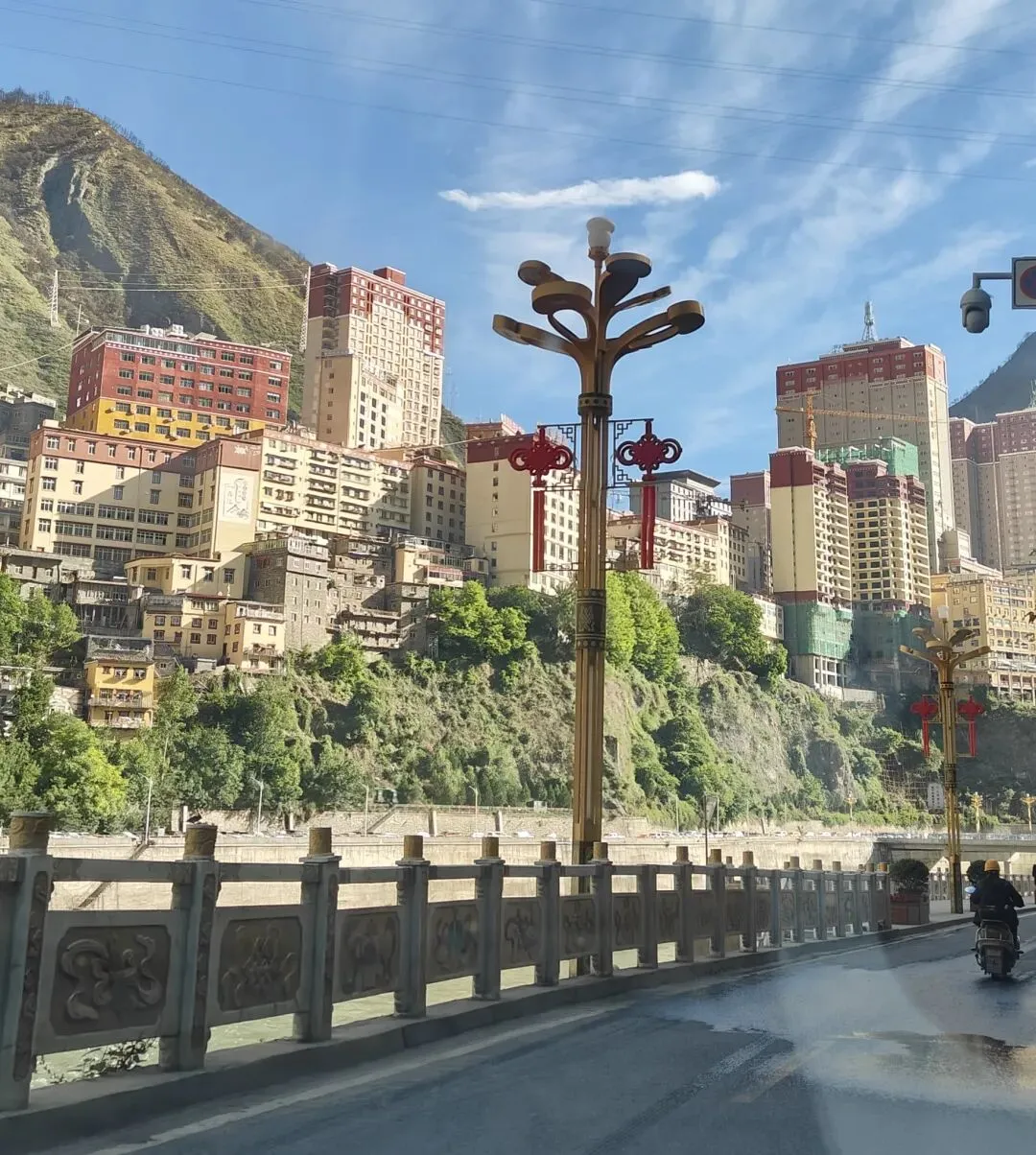 傍晚时分终于抵达雅江,雅江是全国最小的一座县城,是318进藏途中最重要的补给点,藏语名”亚曲喀”,即河口之意,是位于四川甘孜州南部的一座悬崖江城,素有中国松茸之乡的美称,县城紧邻雅砻江而建,房屋密密麻麻的分布在陡峭的半山腰之上,布局错落有致,从远处眺望,高低错落的建筑仿佛悬于悬崖之上,与雅砻江相互映衬,公路就在楼栋之间穿梭,抬头是山,低头是江,比重庆还要魔幻。