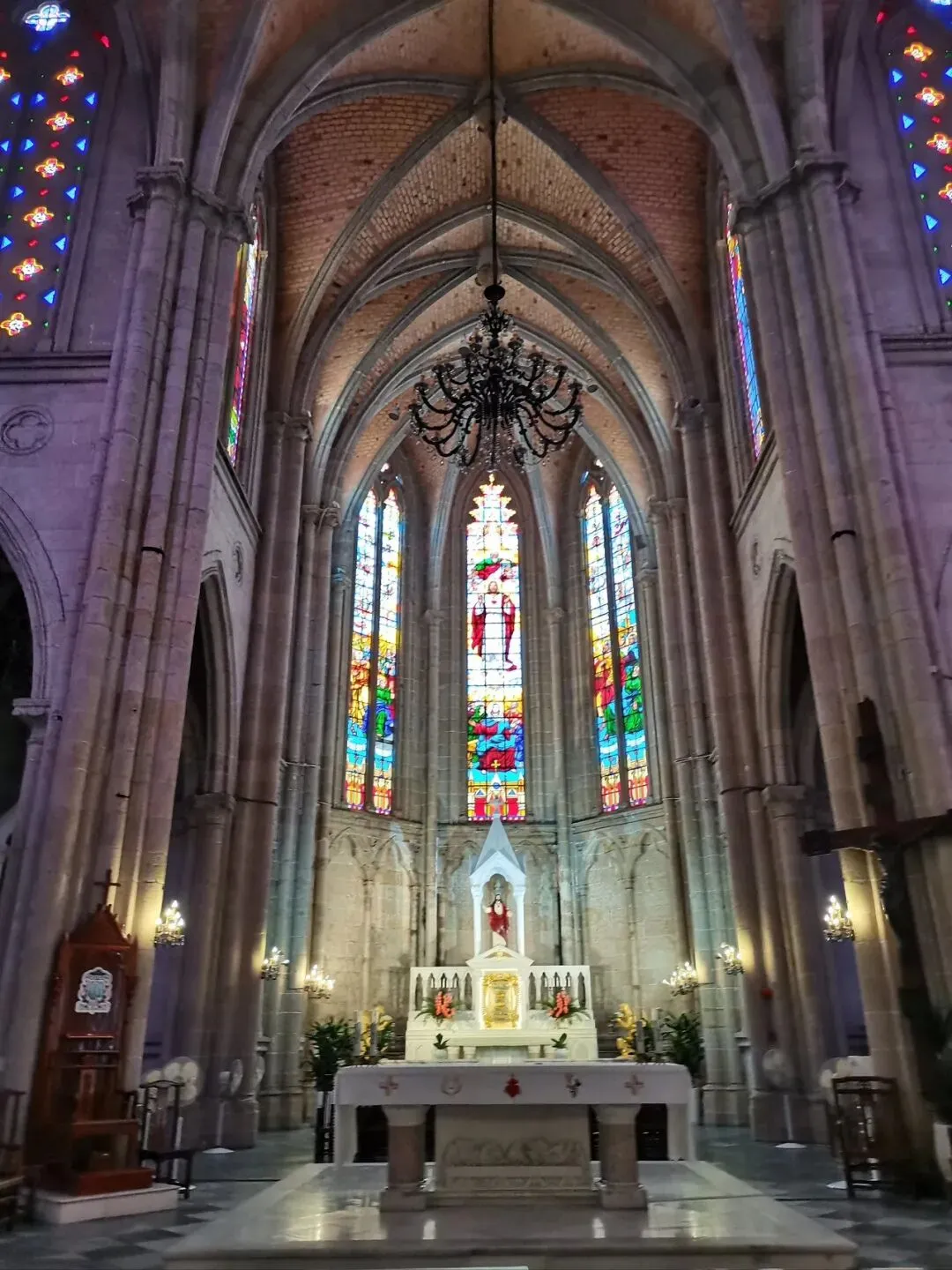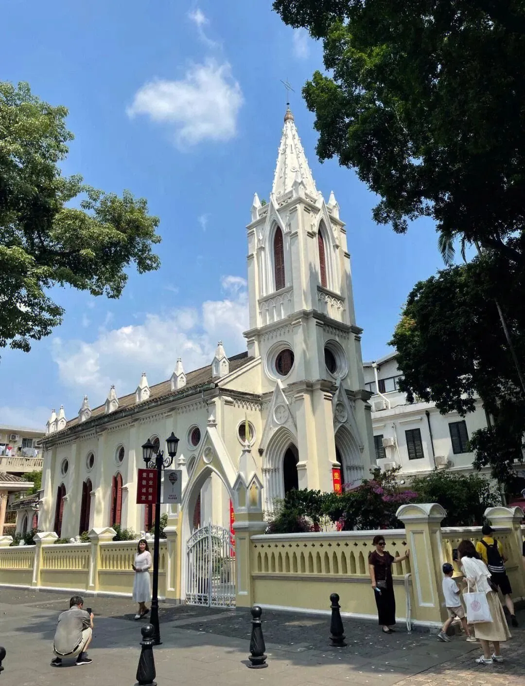 10.圣心大教堂:广州圣心大教堂,又称之为“石室”,位于广东省广州市越秀区一德路旧部前56号,清光绪十四年(1888年),教堂建成。广州圣心大教堂建筑面积2754平方米,东西宽35米,南北长78.69米,由地面到塔尖高58.5米。教堂造型挺拔,内部空间深远,细部做工精美,高耸的塔楼,巨型的柱束,屋顶的尖拱以及花窗棂最具特色,是东南亚唯一一座用花岗岩石砌成、保存比较完整的“哥特式”大教堂,是全球四座全石结构哥特式教堂建筑之一,具有较高的历史价值、建筑价值和艺术价值。