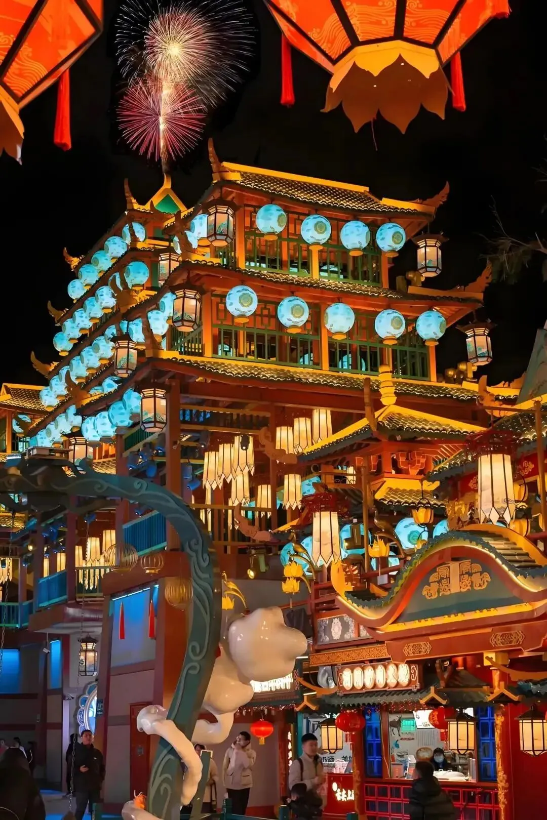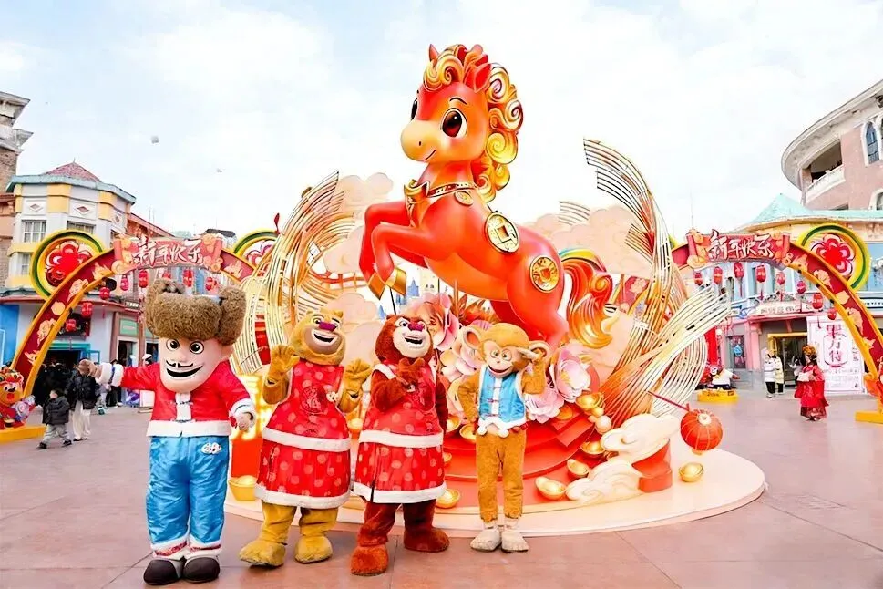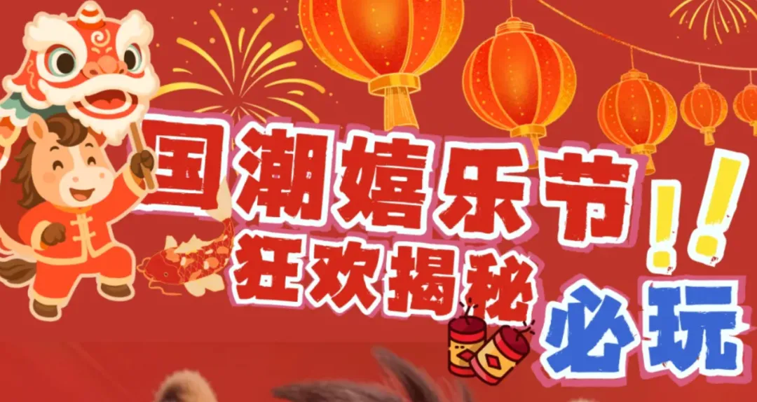 活动内容:打卡马年新春美陈和灯笼长廊,感受红红火火年味;看限定贺岁演出,祥狮献瑞、花车巡游,参与篝火晚会和趣味互动,尽享节日欢乐。