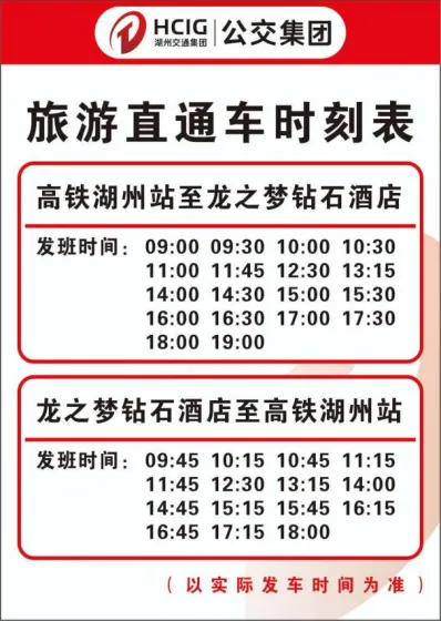 高铁湖州站 ⇄太湖演艺城锦湖站⇄龙之梦钻石酒店