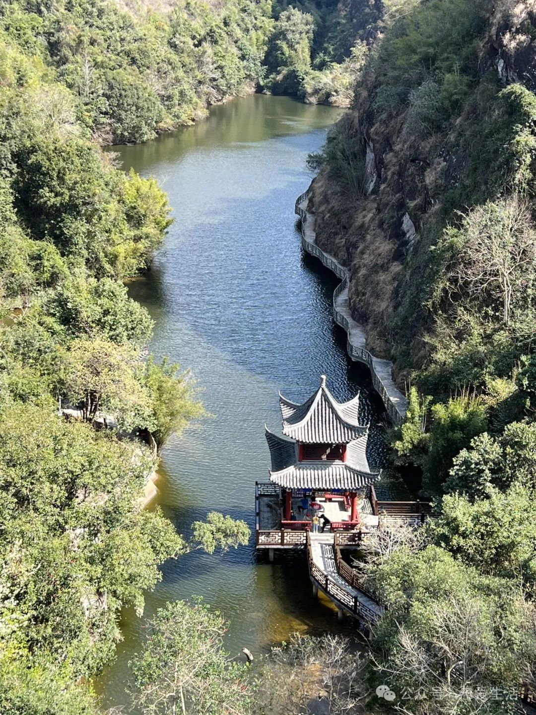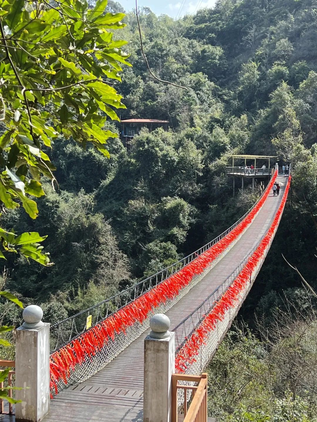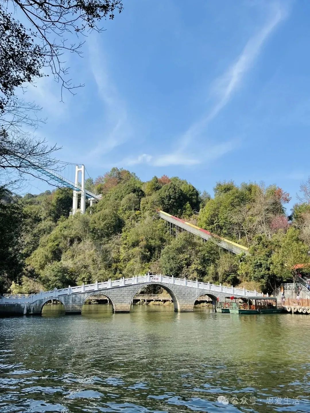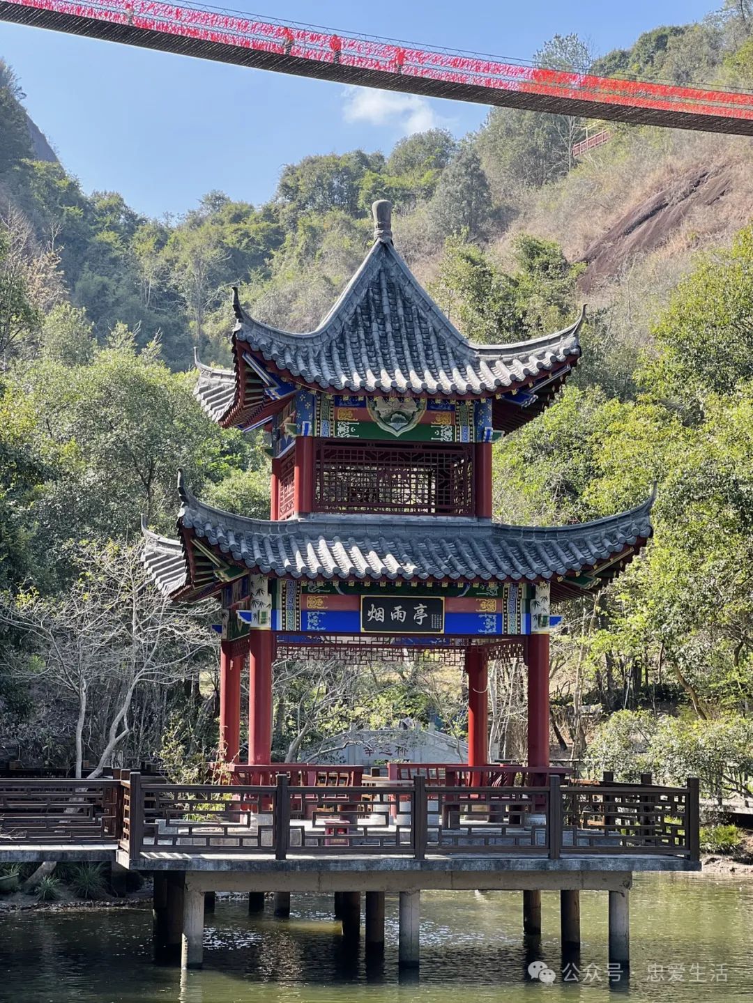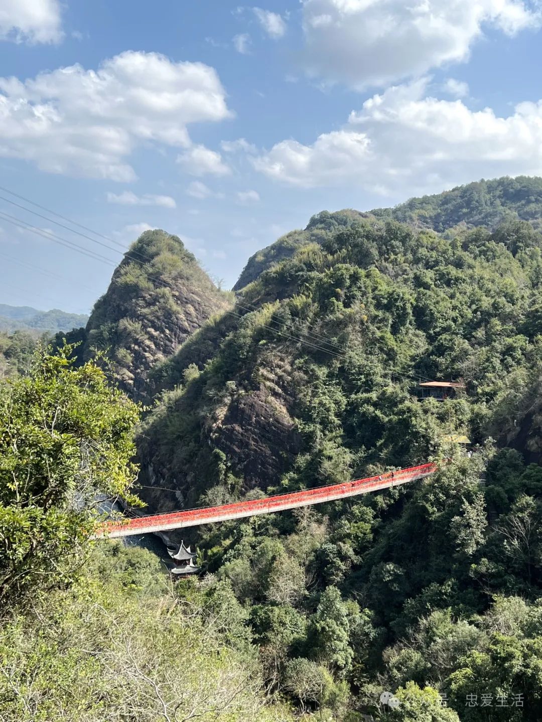 编语:丹霞地貌,奇山耸立,河边栈道,峡谷游船,高空木桥玻璃桥,多处网红打卡点。所谓游山玩水,悠然自得。