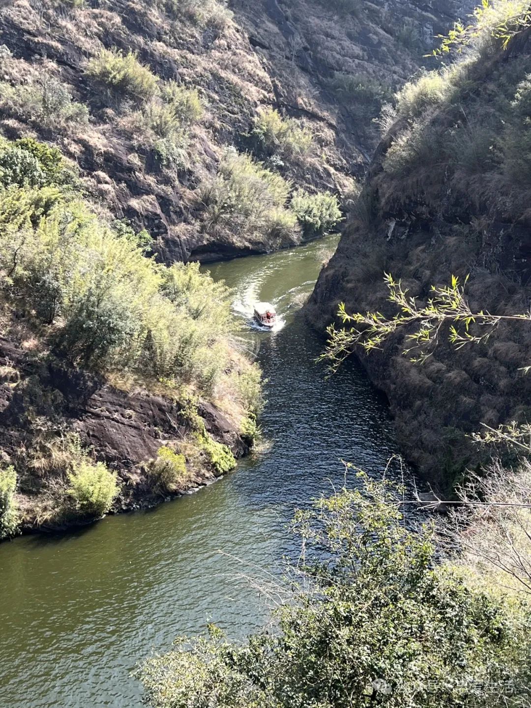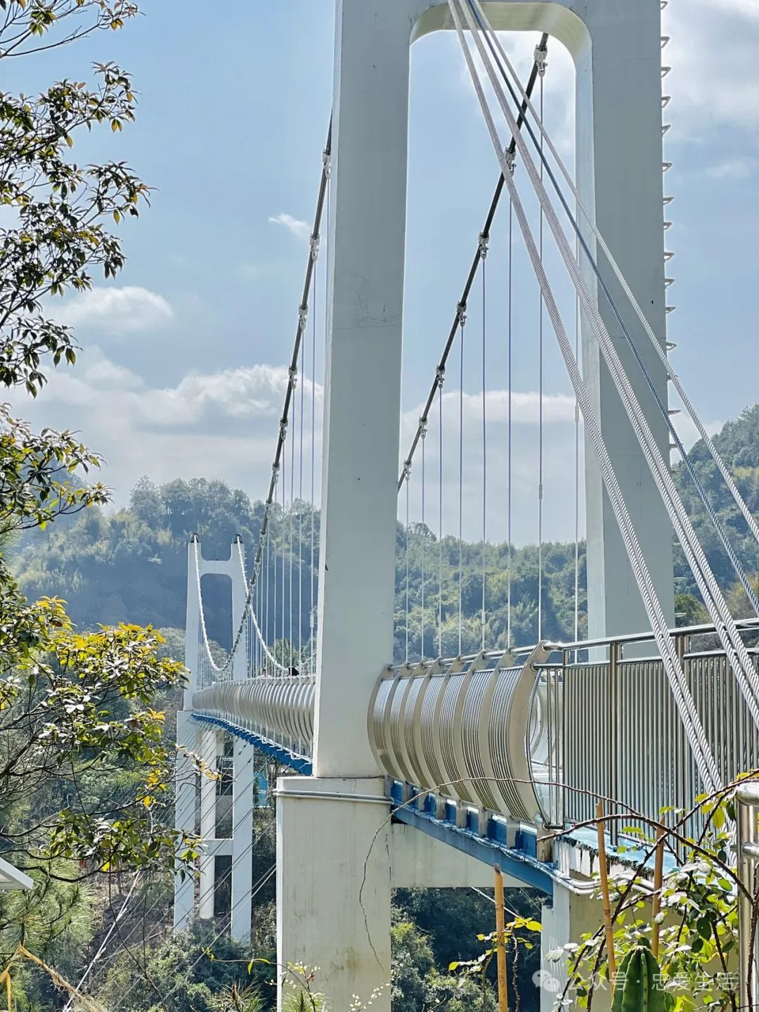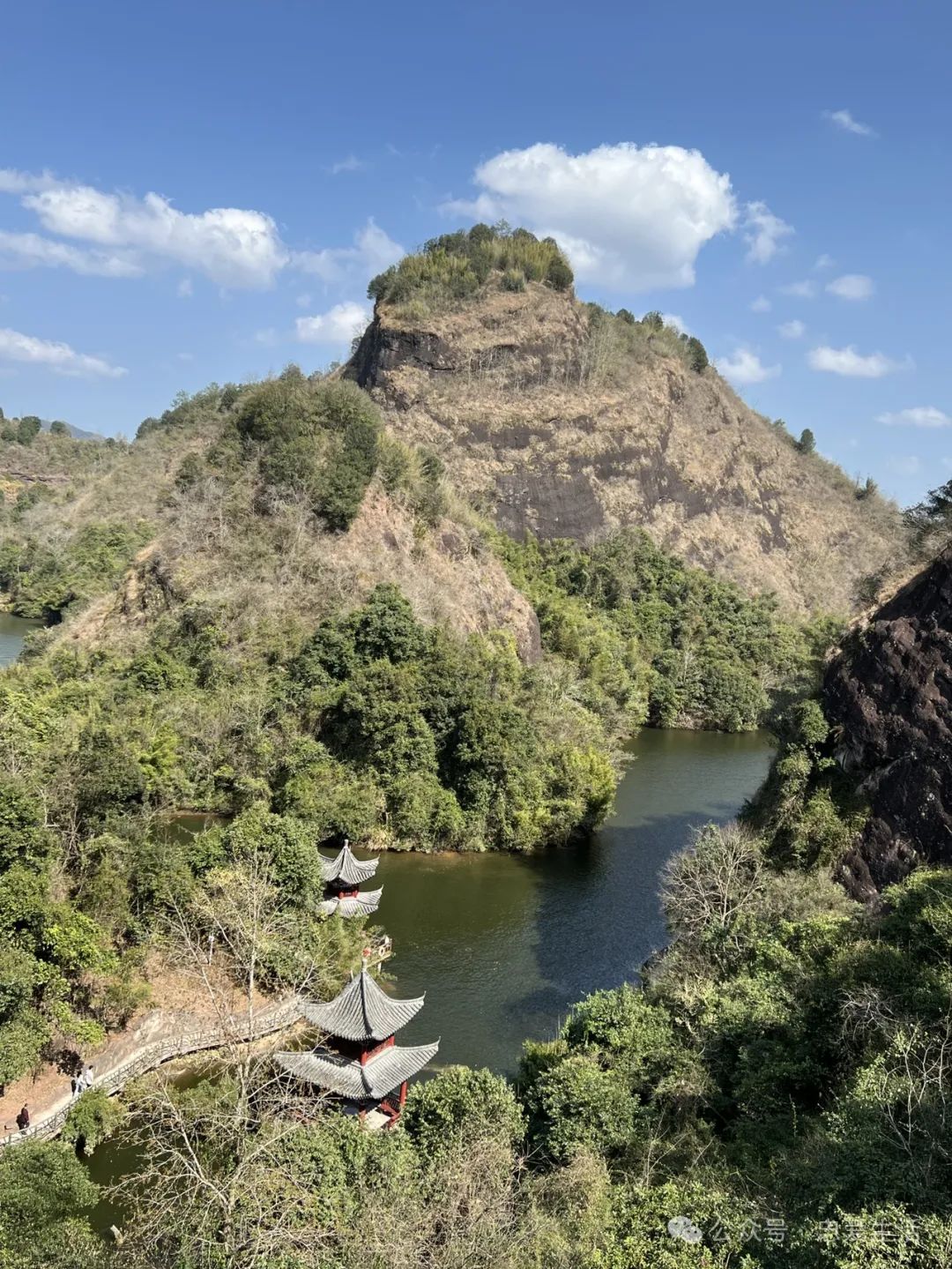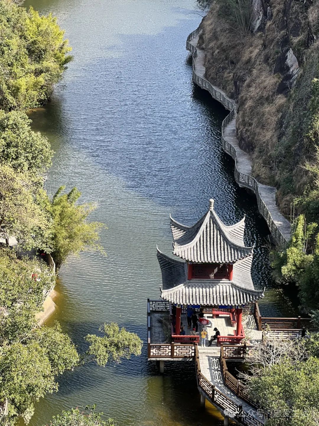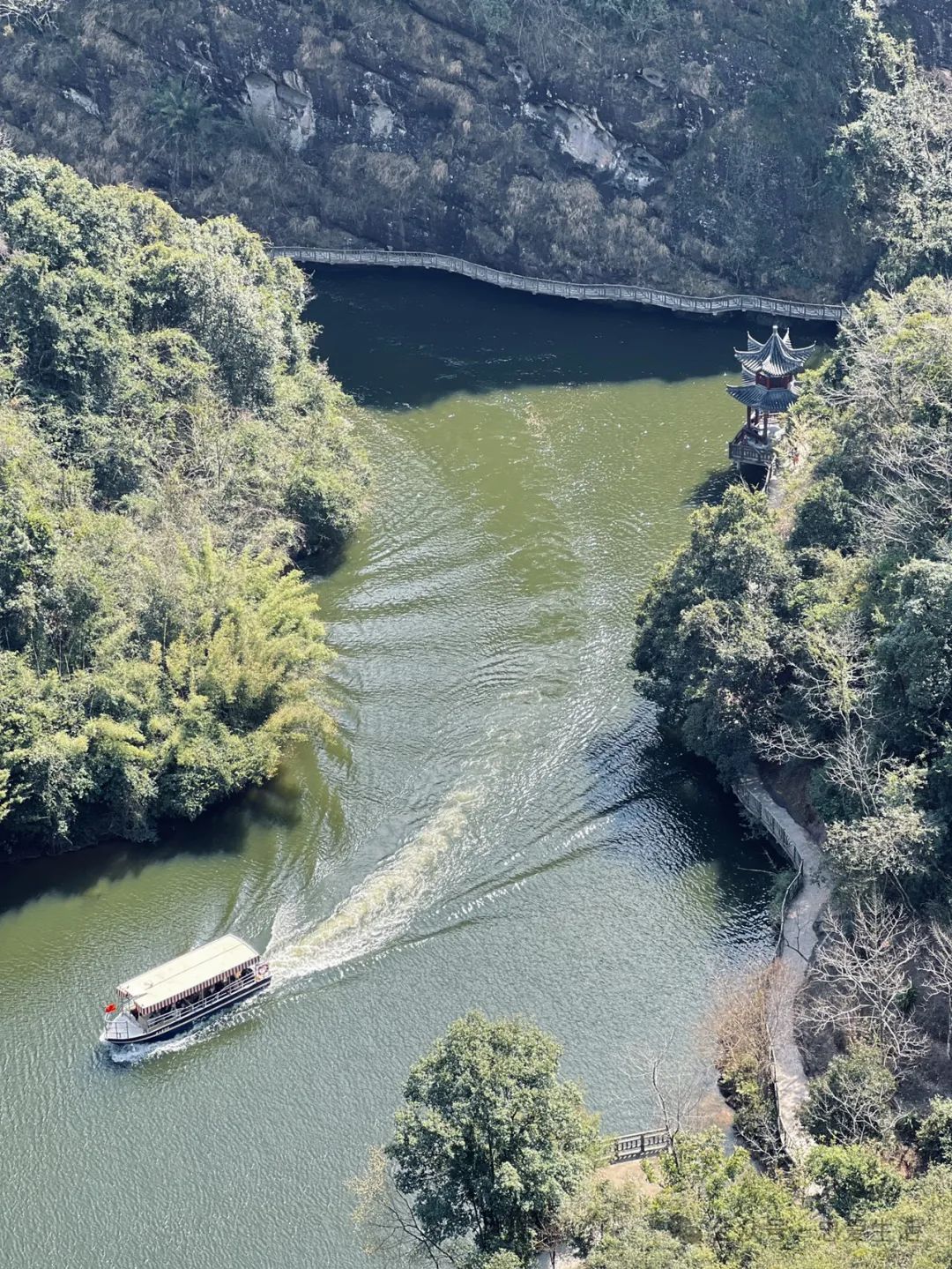 编语:丹霞地貌,奇山耸立,河边栈道,峡谷游船,高空木桥玻璃桥,多处网红打卡点。所谓游山玩水,悠然自得。
