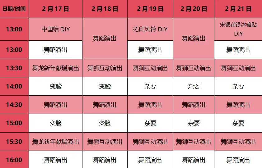 15 廿八 | 16 除夕 | 17 春节 | 18 初二 | 19 初三 | 20 初四 | 21 初五 |