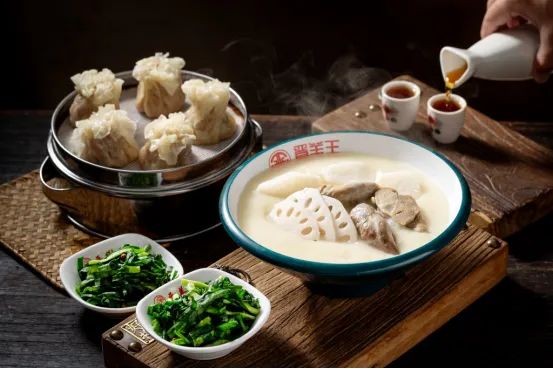 晋羊王羊汤 :“晋羊王”品牌成立于2015年,前身为“晋羊闸”,与太原历史名人傅山有深厚渊源。傅山曾以药膳“八珍汤”(即“头脑”)为母治病,后传入民间,成为太原传统早餐的代表。晋羊王继承这一传统,将羊汤与药膳结合,形成独特的养生理念。晋羊王根据冬夏人体需求,推出不同配方的羊汤。冬季加入当归、黄芪等药材,温补肝血;夏季则注重祛湿散寒,体现“药食同源”的智慧。晋羊王烧麦制作技艺于2020年被评为万柏林区非物质文化遗产,2023年品牌入选“太原老字号”,成为太原饮食文化的重要符号。