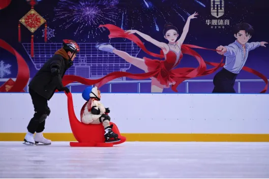 “锦绣龙城”冰上嘉年华:位于万柏林区长风西街道,活动场地总面积3000㎡,其中冰面面积1560㎡,可满足花样滑冰表演及大众体验需求。场地采用开放环线设计,在保障游览动线流畅的同时,最大限度降低对周边居民的影响,现场以郁金香灯海、特色灯光等物料营造浓厚年味,同步融入多元冰上运动元素,构建“运动+娱乐+亲子+公益+文化”的复合型体验场景。