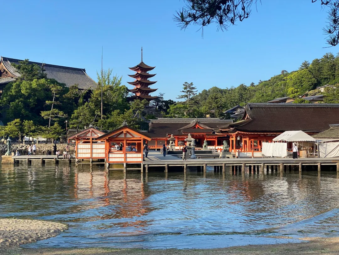 坐落于宫岛的严岛神社,最惊艳的莫过于那座漂浮在海上的红色大鸟居,涨潮时鸟居宛若立于碧波之中,神秘又壮观,与周边的海景、山林相融,是日本三大景之一,氛围感拉满。