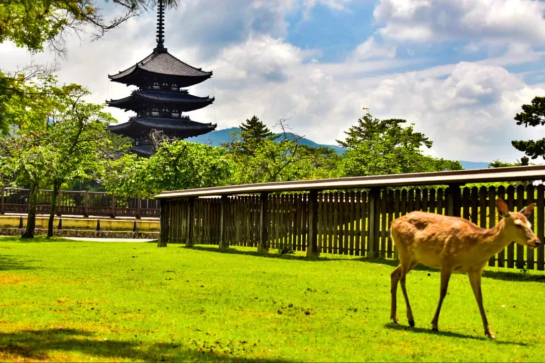 奈良公园是「小鹿爱好者」的天堂,上百只小鹿温顺可爱,会主动向游客鞠躬讨食,园内还有东大寺、春日大社等知名古迹,小鹿、古寺、青山相映成趣,随手一拍都是治愈系画面。