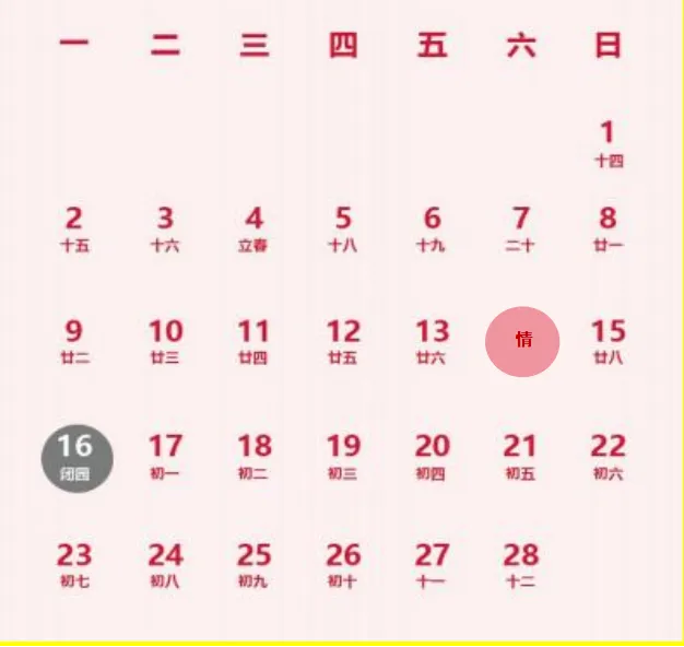 2月16日( 除夕 ),全天闭园