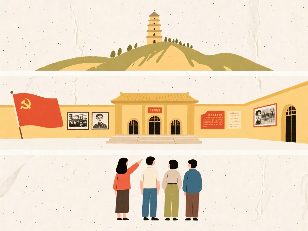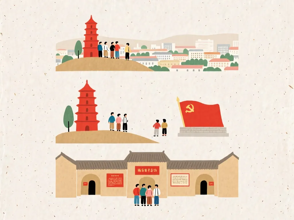 下午前往杨家岭革命旧址,参观中共七大会址,傍晚登上宝塔山,欣赏日落与延安全景,等待夜景亮灯。