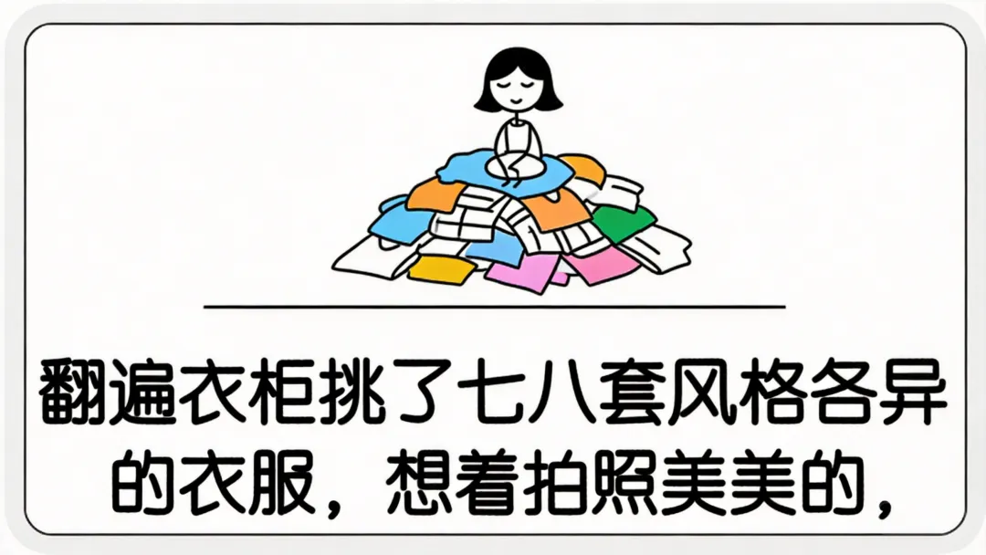翻遍衣柜挑衣服 ,到地却穿运动服 ;