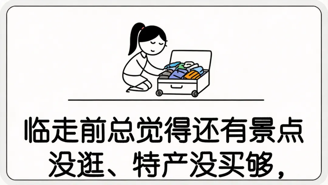 临走总觉没逛够 ,到家一半是无用之物 ;