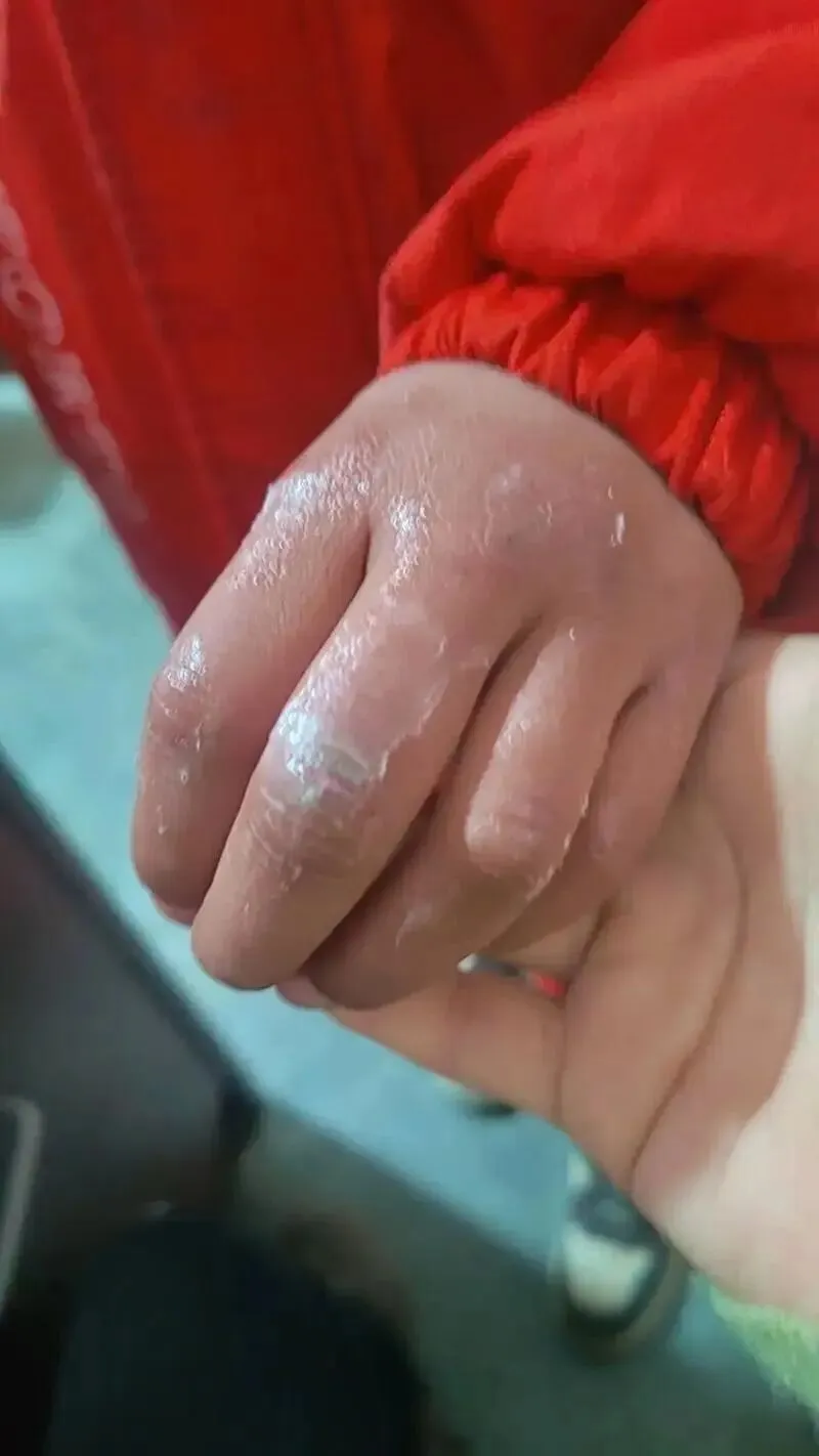 等妈.妈出来一.看,好家伙,孩子小.脸煞.白,嘴唇发.紫,那双.小手.又红又肿,摸上.去跟.冰块似.的。这明显是.冻伤了!