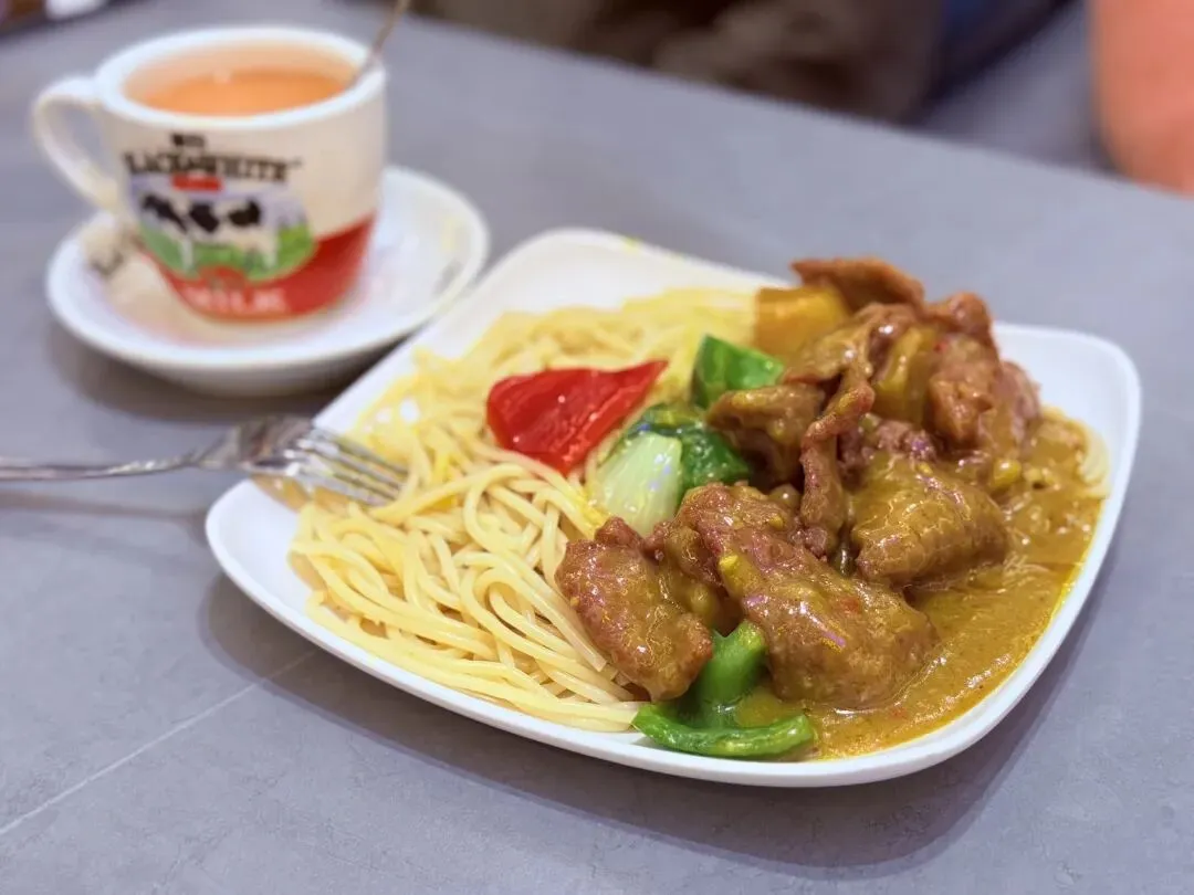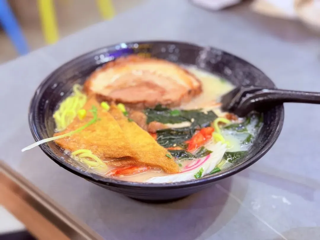 队友点的海鲜拉面味道很不错,我点了咖喱牛肉拉面和港式奶茶。