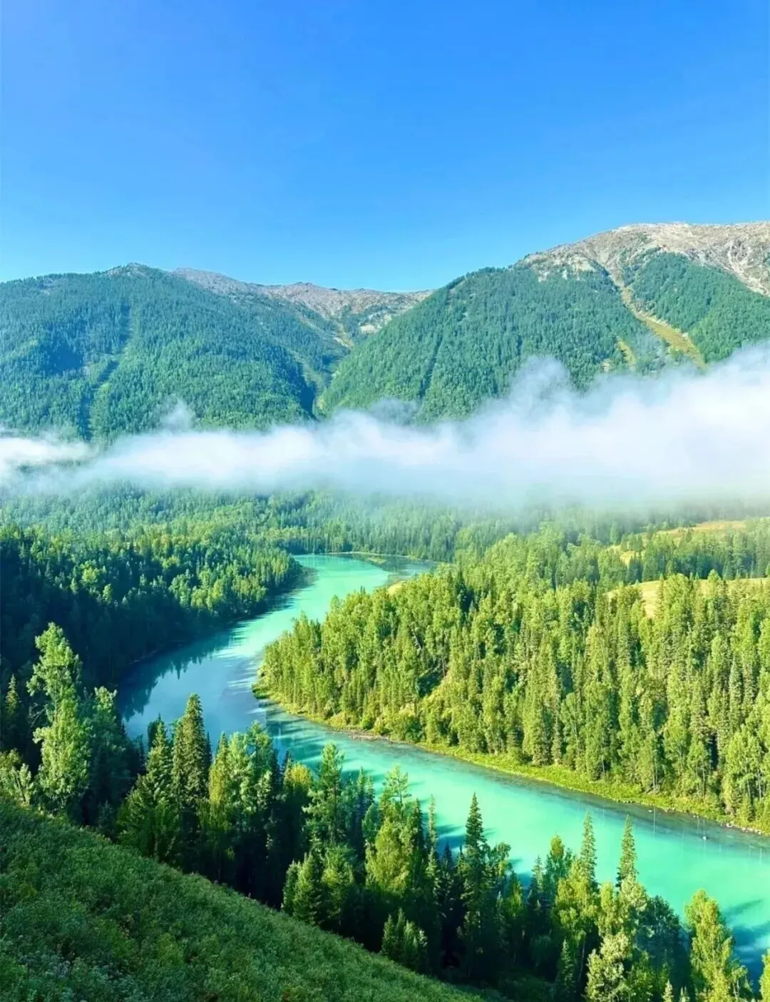 喀纳斯的美在于它的神秘。湖水会随着季节变换颜色,从碧绿到深蓝。当地图瓦人说湖中有"水怪",更增添了这里的神秘色彩。秋季是最佳游览季节,白桦林变成金黄色,倒映在湖水中,美得让人窒息。建议住在景区内的小木屋,清晨可以独享没有游客的喀纳斯。