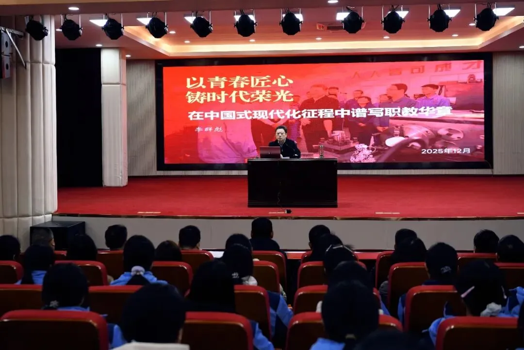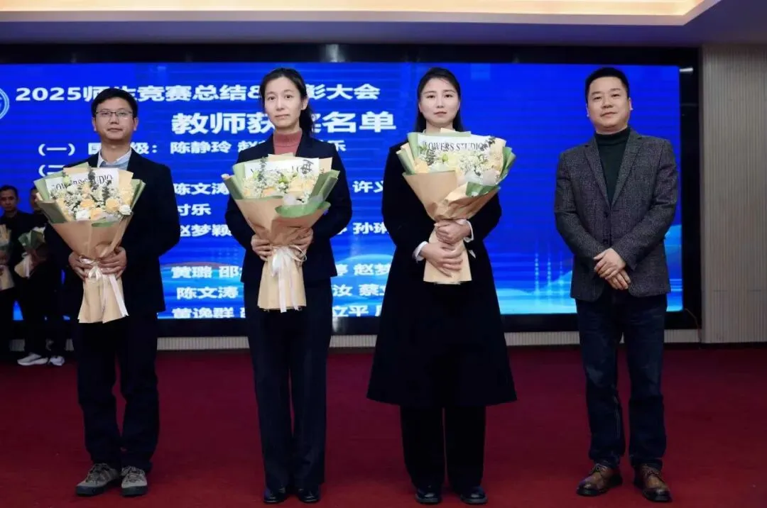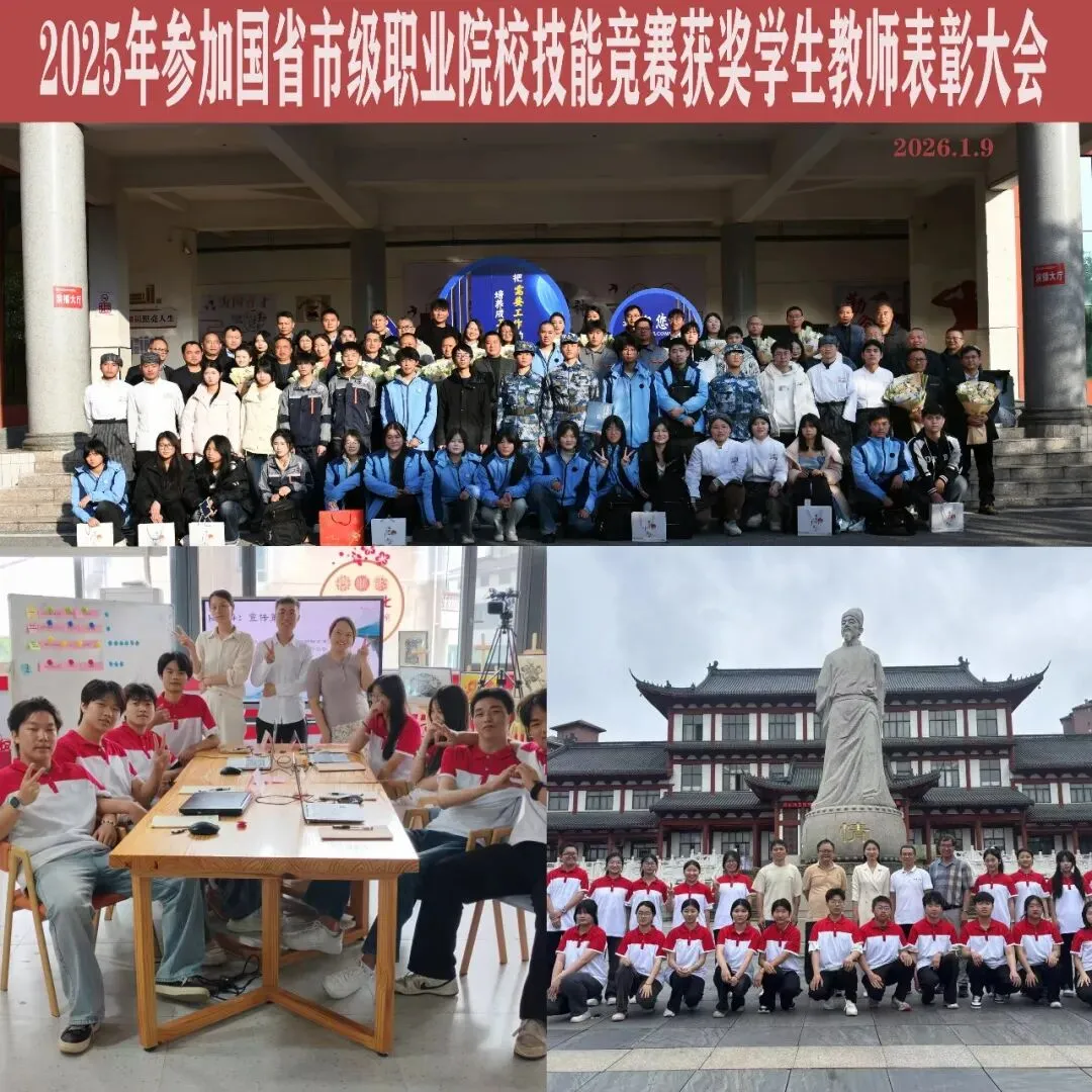 2025年,学校师生累计斩获市级以上奖项40项78人次,省级三等奖以上奖项23项45人次,勇夺国家级奖项3项9人次,每一份荣誉都镌刻着师生的共同付出与不懈追求。2026年1月9日,我校在演播大厅隆重举行了“2025年全国职业院校技能竞赛总结暨表彰大会”,学校党政班子成员、全体获奖师生出席大会,处室代表、教师代表、企业代表、专业代表、学生代表等应邀参会,表彰活动同步直播至各班供学生收看,让工匠精神在师生同心奋进中厚植生根,为职业教育高质量发展续写崭新篇章。