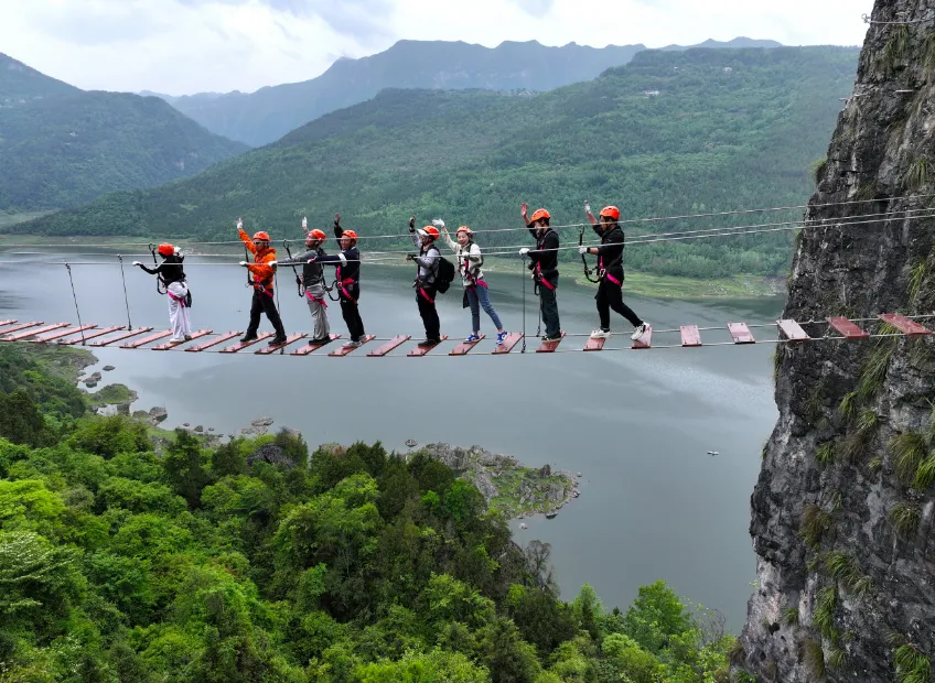 峰林体验:丹霞徒步、摸红包打卡、飞拉达攀岩(自费),游览时长约2-3小时。