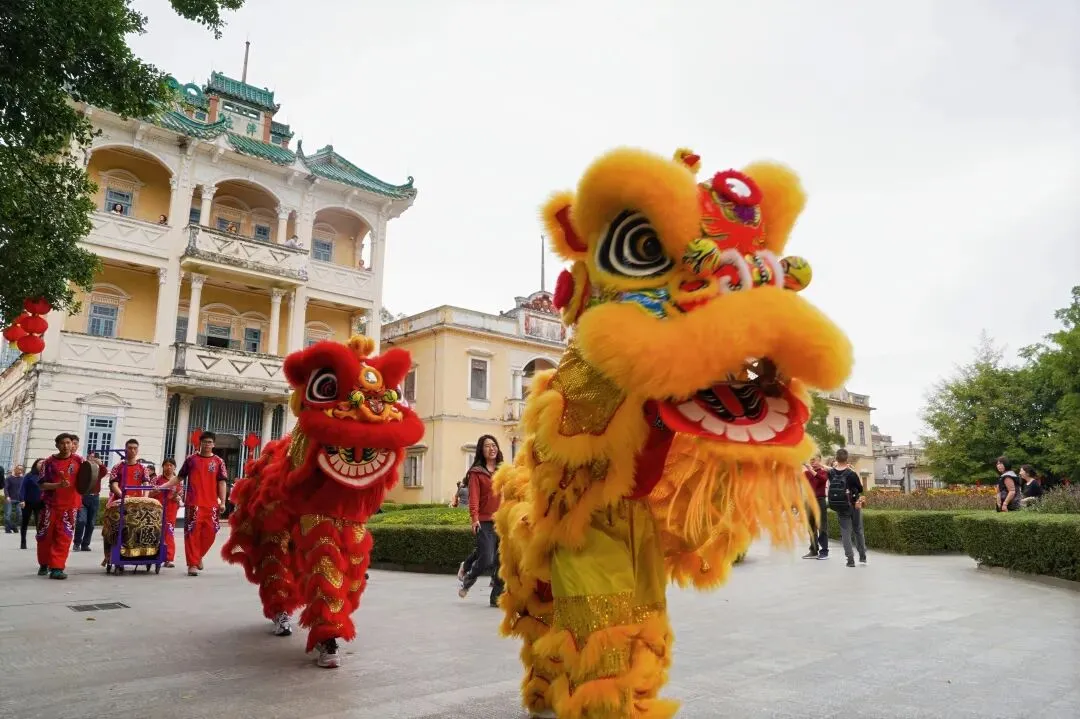 循着锣鼓声走去,金狮在庭前欢腾跃动。这项源自岭南、随华侨传扬四海的非遗技艺,如今带着鲜活气息“回家”,将祥瑞洒满立园的每个角落。