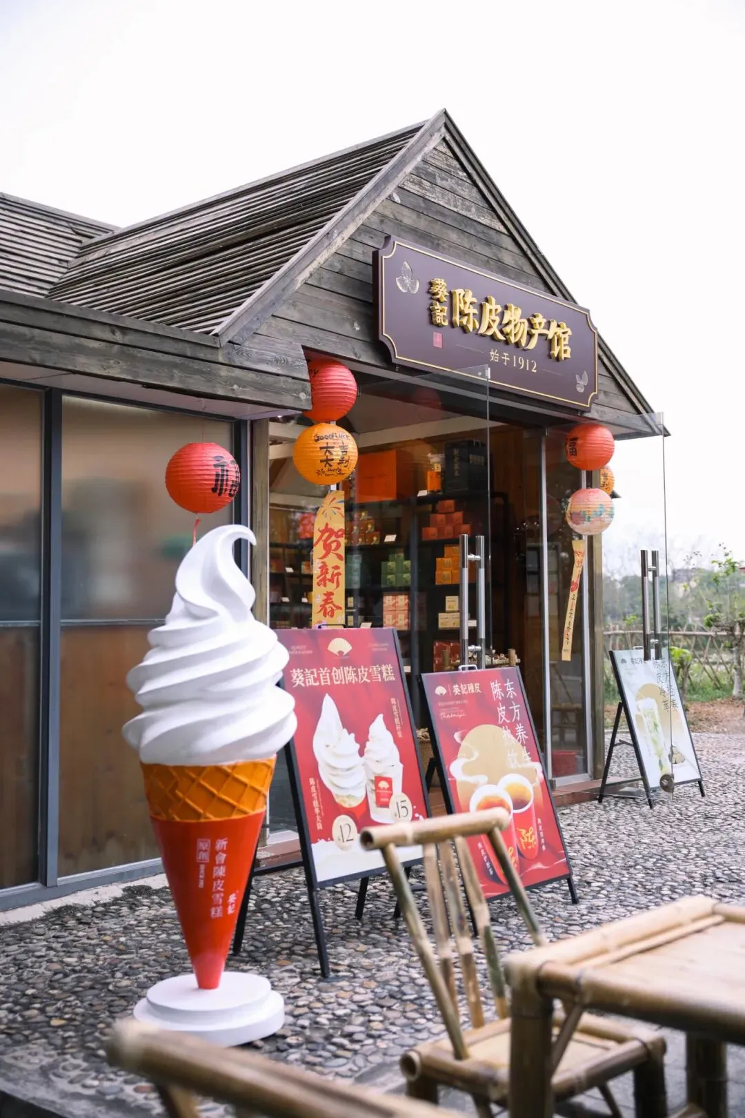 在葵记陈皮物产馆,甜筒雪糕、巴斯克蛋糕、养生茶都融入陈皮清香,既解腻又回甘,是新春伴手礼的好选择。