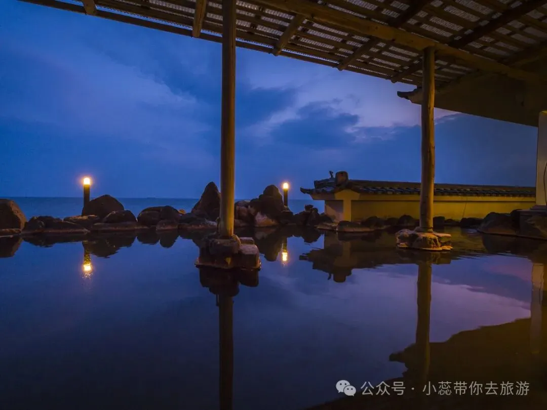 从沿海旅馆能够将伊势湾的绝美风光一览无余,尤其在夕阳西沉之时,红霞映照海面,营造出浪漫迷人的氛围。此地的温泉属于含钠、钙的强力食盐泉,泉质清爽顺滑,实乃能令人放松身心的绝佳场所。