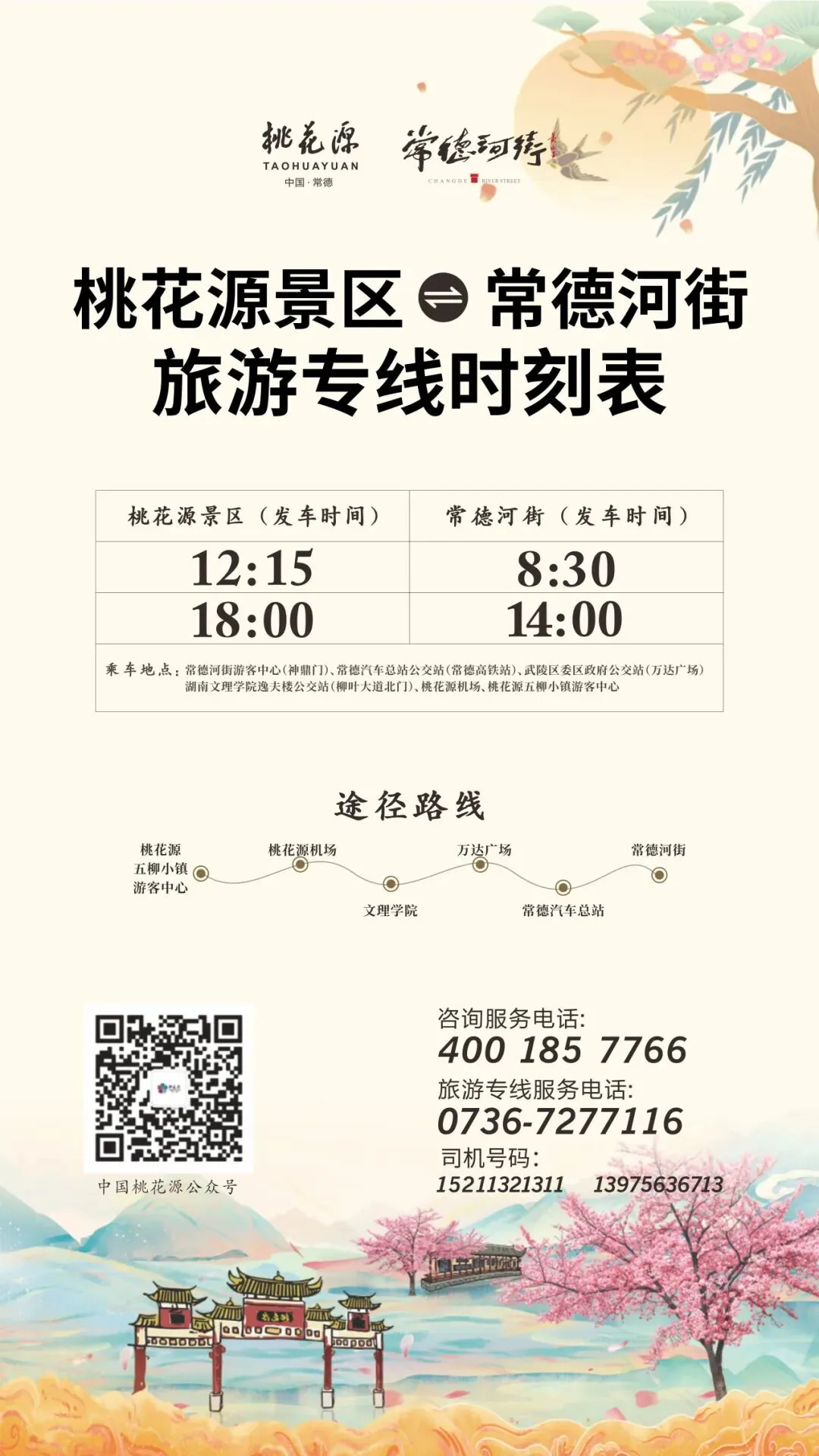 家人们!常德文旅放大招啦! 备受期待的常德河街⇋桃花源旅游专线开通啦,关键是全程免费乘坐,无任何隐形消费!