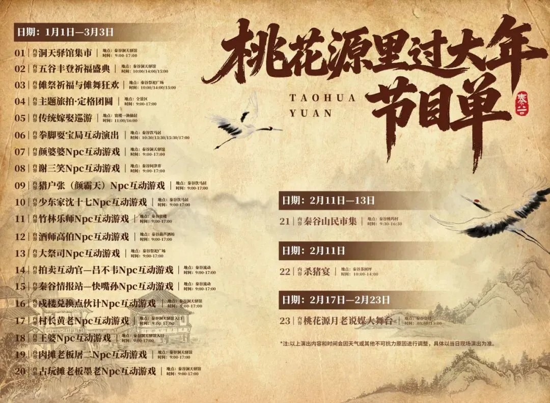 这里有热闹非凡的新春庙会、氛围感拉满的国风展演,还有传统嫁娶巡游等趣味活动,逛民俗市集、购特色好物、品饕餮盛宴,沉浸式感受世外桃源里的别样年俗,把新春的欢喜与美好一并收入囊中~