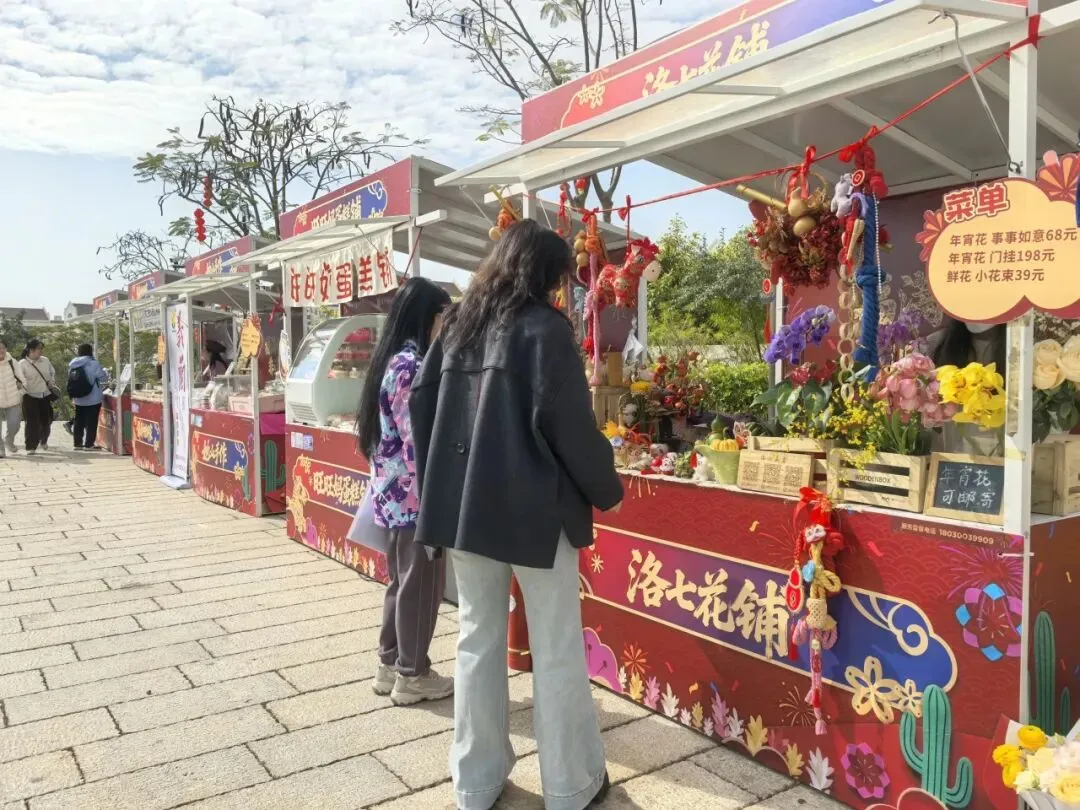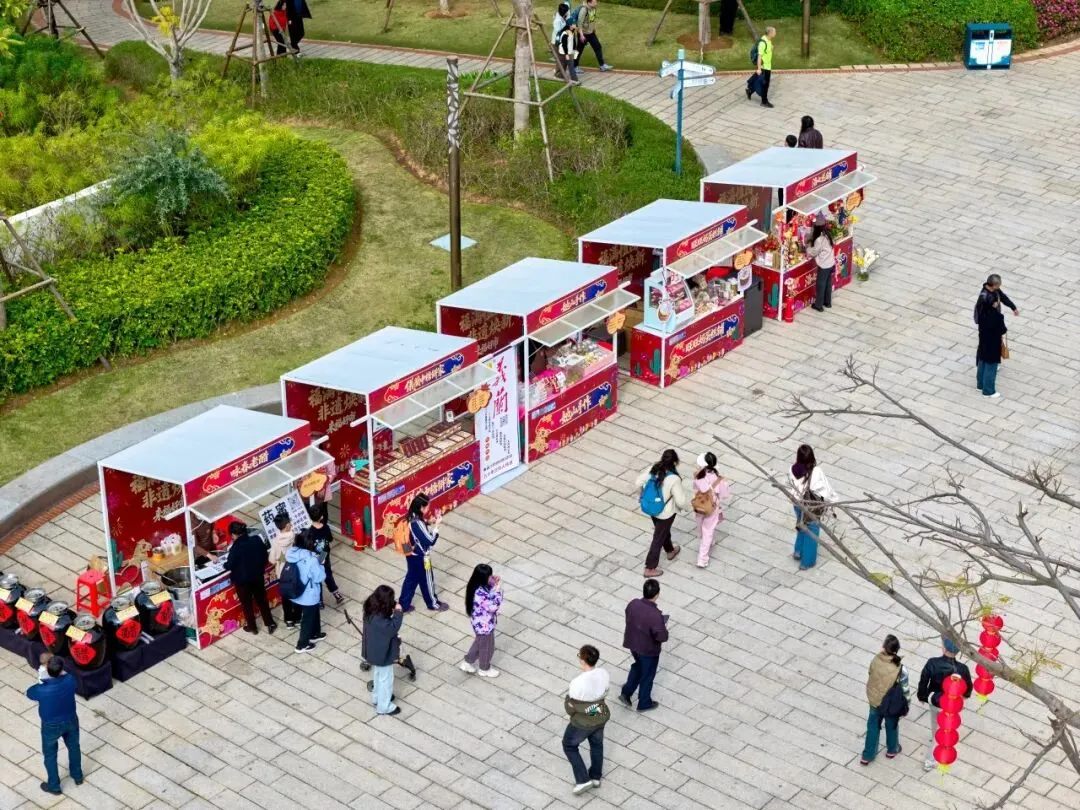 2月7日开始在植物园南门广场率先开放“来福好市”年货市集;2月15日至23日,南门广场、狮山园、东西环线慢行道、百花厅广场新春市集同时开张迎客。
