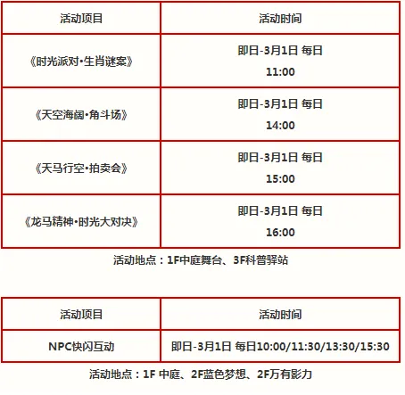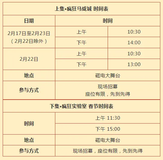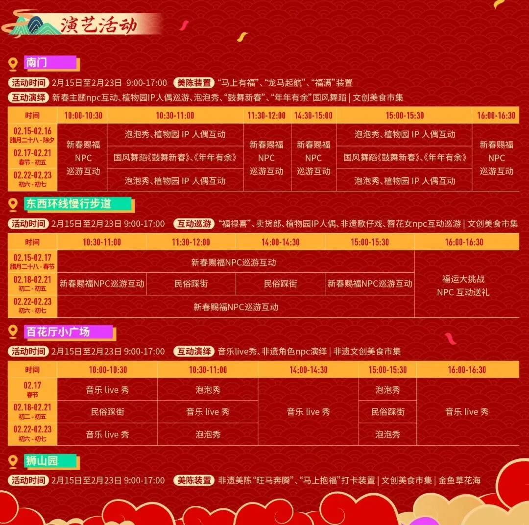 时间:2月17日-2月23日(初一至初七)10:00-11:00