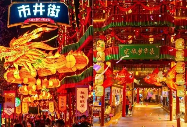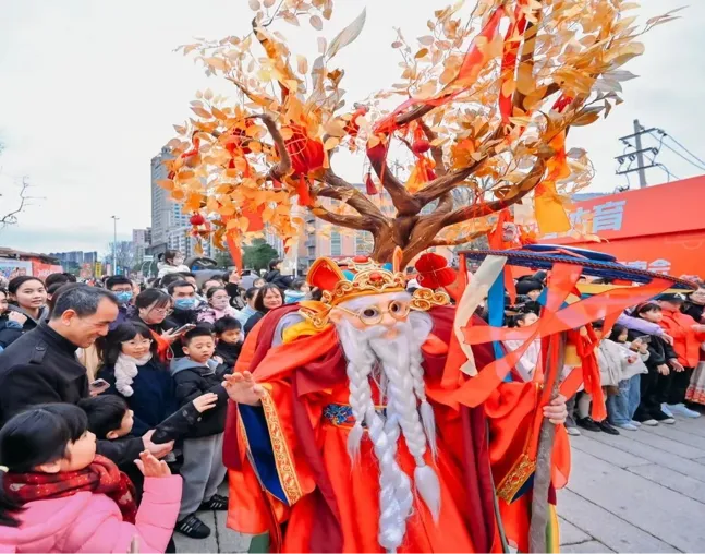 非遗舞龙表演、卖货郎叫卖、财神送礼、状元赐福、绣楼抛彩、市井博彩等精彩互动演艺轮番上演,沉浸式感受“剧中”氛围。