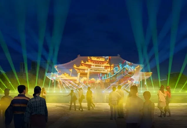 定点演艺:儿童汉服走秀,传承东方文化;古典电音派对震撼上演,古筝×电子乐×光影秀,精彩纷呈