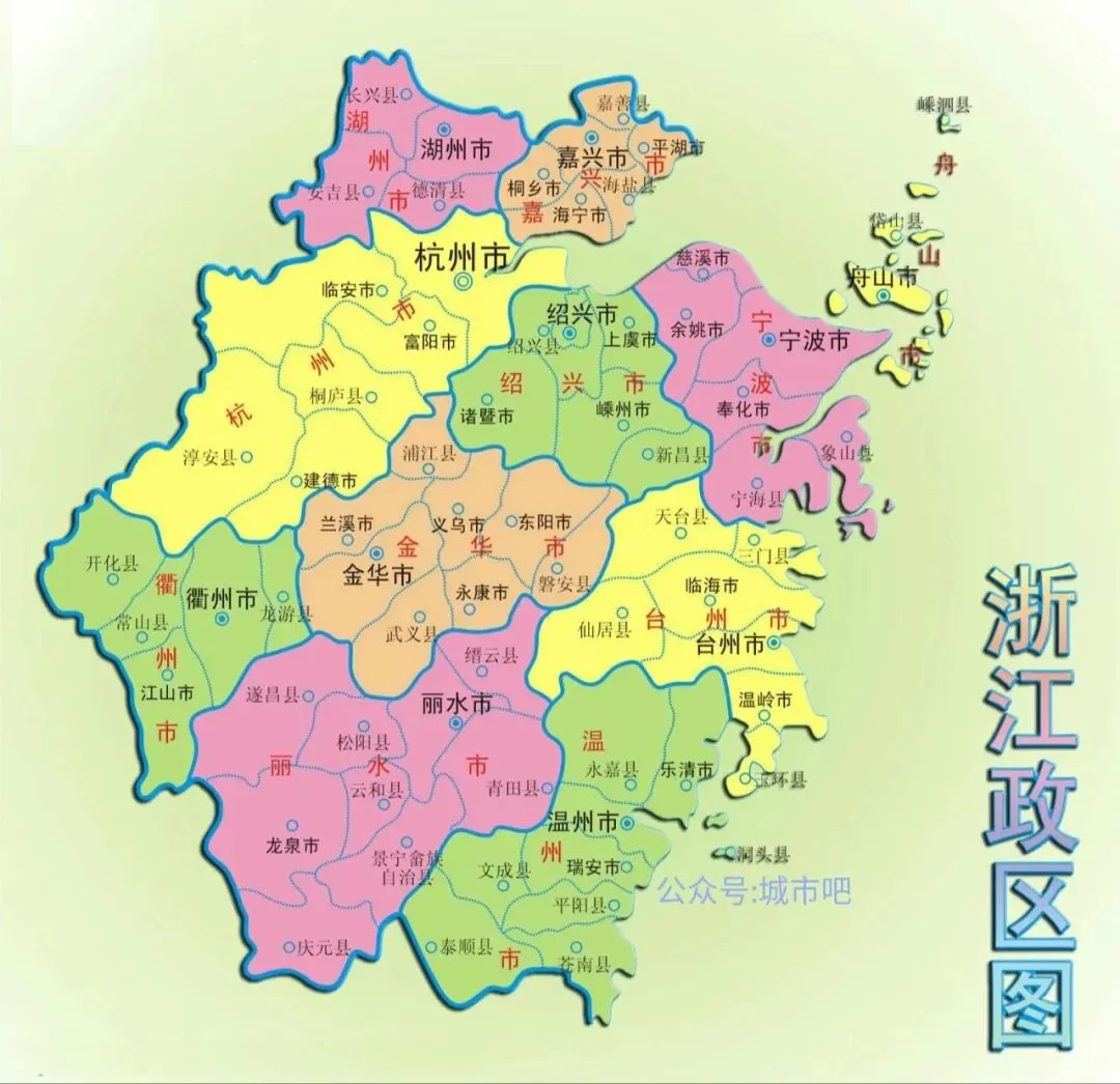 浙江省,简称“浙”,是中华人民共和国省级行政区,省会为杭州市。浙江省2025年GDP为94545亿元,同比增长5.5%,位于中国东南沿海地区,东连东海,南靠福建,西与江西、安徽为界,北与上海、江苏相连,是中国面积较小的省份之一,陆域面积为10.55万平方千米,海域面积为26万平方千米。截至2024年末,境内常住人口为6670万人,下辖11个地级市(杭州、宁波、温州、金华、嘉兴、台州、绍兴、湖州、衢州、丽水、舟山)。