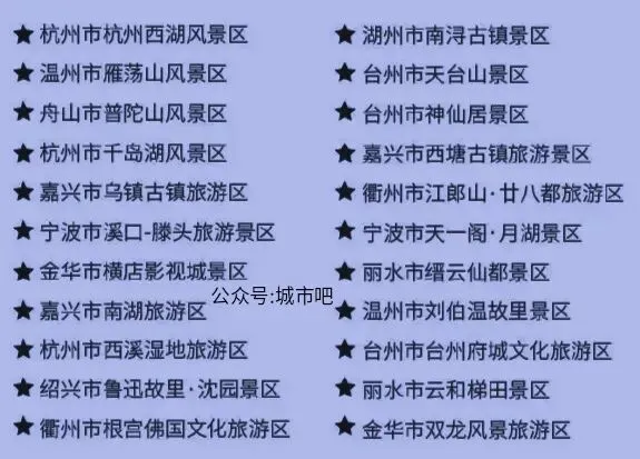 截至2025年12月,浙江共有(22家)国家5A级景区:↓
