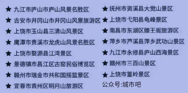 截至2025年12月,江西共有(15家)国家5A级景区:↓