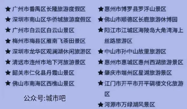 截至2025年12月,广东共有(16家)国家5A级景区:↓