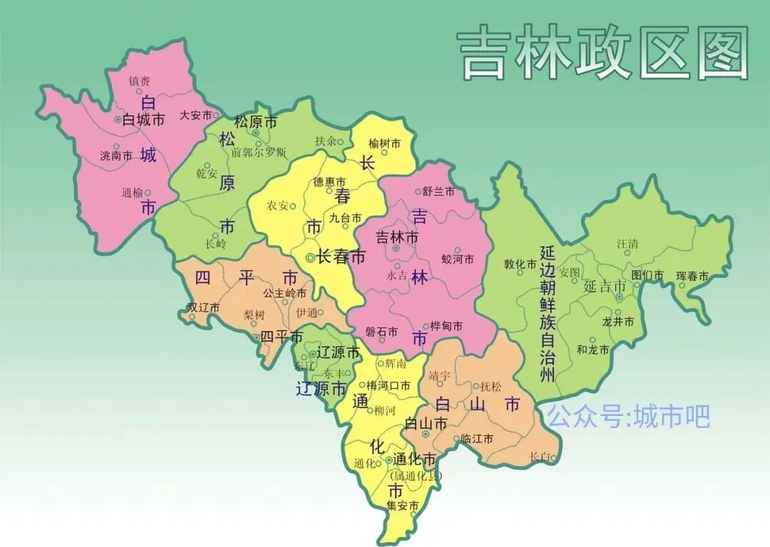 吉林省,简称“吉”,是中华人民共和国省级行政区,省会为长春市。吉林2025年GDP为14973.88亿元,同比增长5%。位于中国东北地区中部,与辽宁省、内蒙古自治区、黑龙江省相连,并与俄罗斯、朝鲜接壤,地处东北亚地理中心位置,面积18.74万平方千米,边境线总长1438.7千米,中朝边境线1206千米,中俄边境线232.7千米。截至2024年末,吉林省下辖8个地级市(长春市、吉林市、四平市、辽源市、通化市、白山市、松原市、白城市)、1个自治州(延边朝鲜族自治州),共21个市辖区、20个县级市、19个县(其中3个自治县)。截至2024年末,吉林省常住人口为2317.31万人。