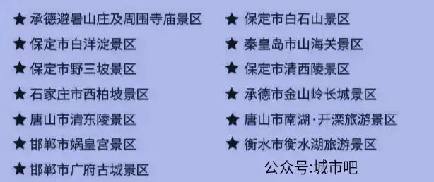 截至2025年12月,河北共有(13家)国家5A级景区:↓