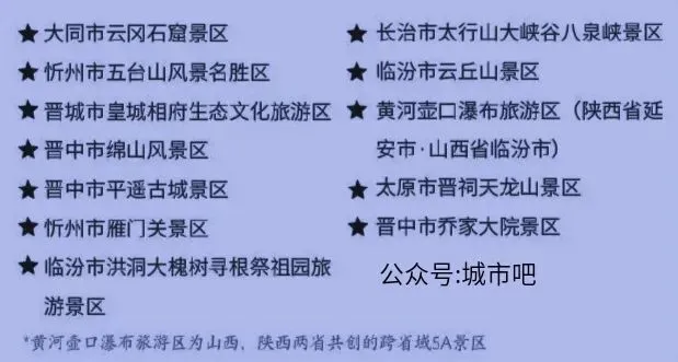 截至2025年12月,山西共有(12家)国家5A级景区:↓