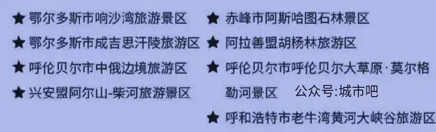 截至2025年12月,内蒙古共有(8家)国家5A级景区:↓