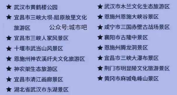 截至2025年12月,湖北共有(16家)国家5A级景区:↓