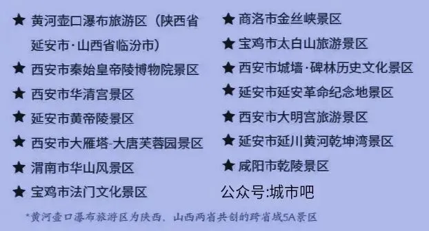 截至2025年12月,陕西共有(14家)国家5A级景区:↓