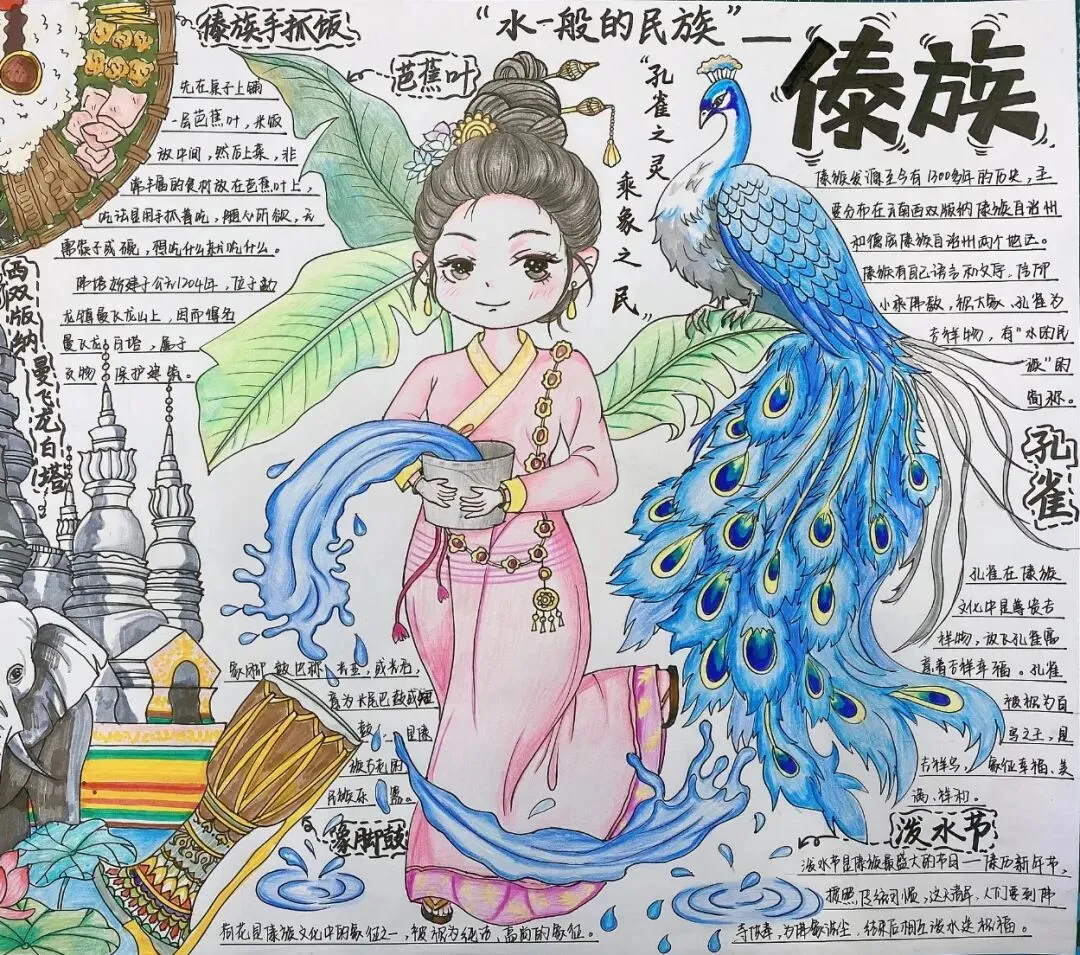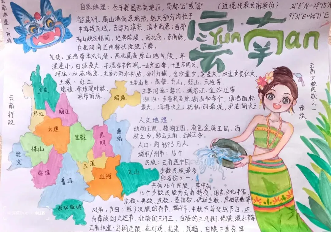美丽云南旅游地理西双版纳攻略手抄报|傣族文化昆明假期旅行特色大理美食民俗孔雀舞航拍中国地理手帐·下关风,上关花,苍山雪,洱海月